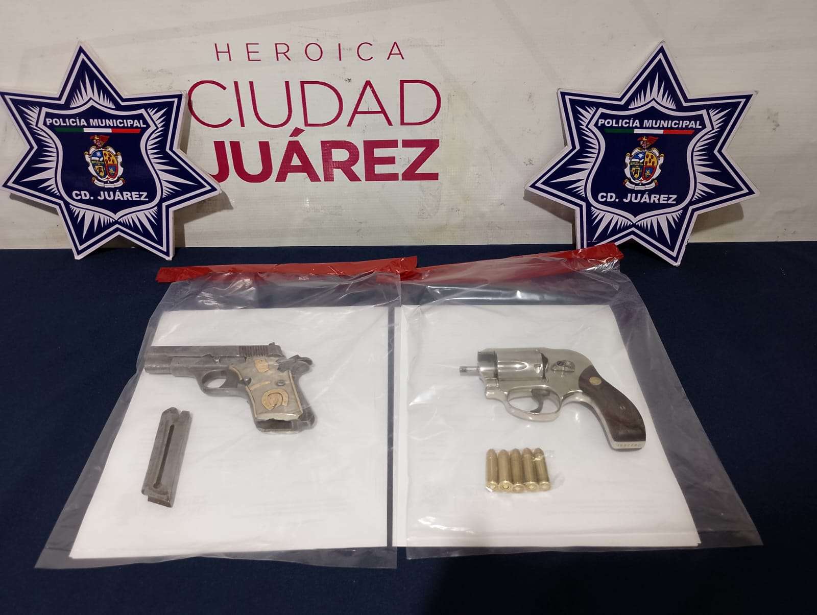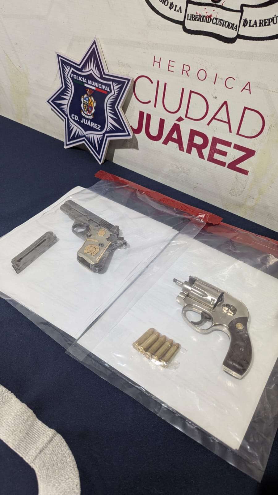 Posteriormente fue sometido a una inspección preventiva en la cual se le localizó entre sus pertenencias un arma de fuego tipo pistola con un cargador metálico desabastecido, así como un revólver calibre .38 con un cilindro abastecido con cinco cartuchos útiles del mismo calibre, razón por la que fue detenido.