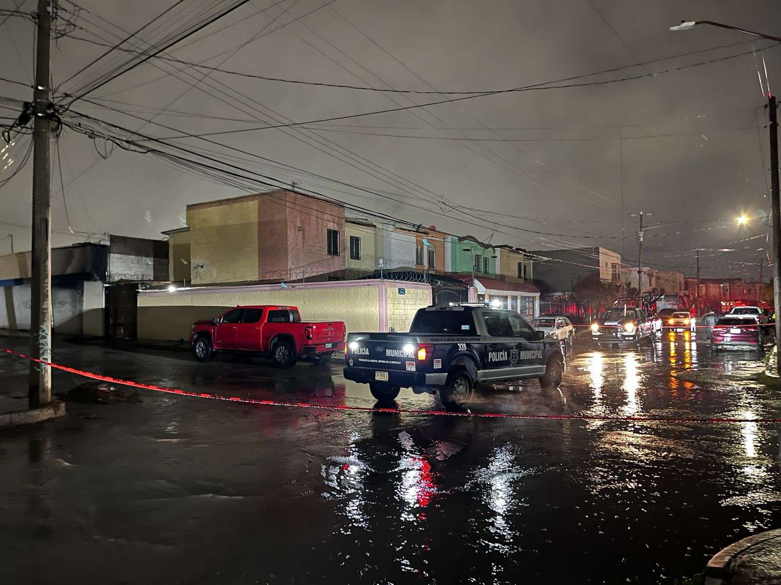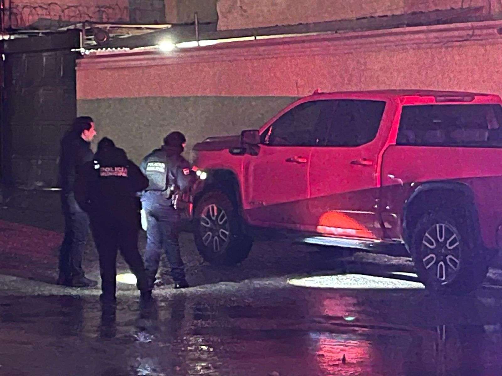 Al arribar al lugar, elementos de la Policía Municipal encontraron una camioneta GMC Sierra de modelo reciente, la cual se encontraba estacionada en el cruce de las calles Trinidad Mireles y Mayor Alfredo Martínez, presentando daños visibles en distintas partes de la carrocería.