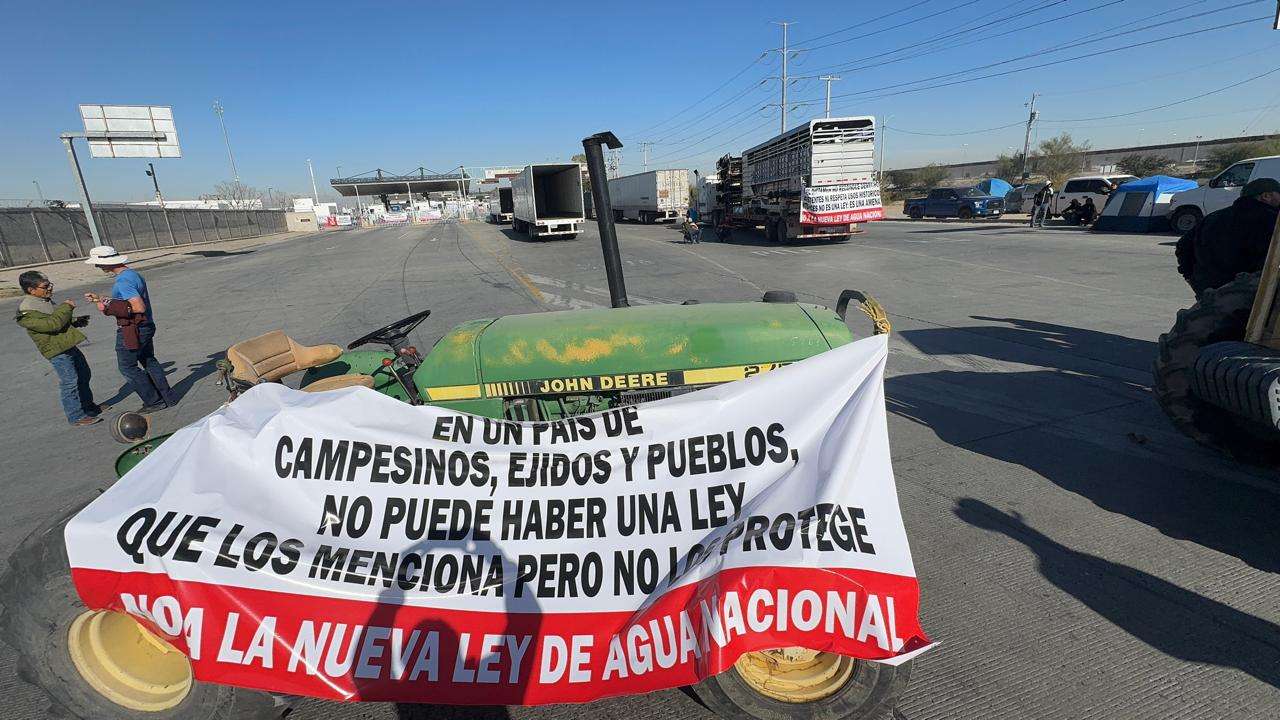 Ciudad Juárez.-Los agricultores de Chihuahua volvieron a paralizar los cruces internacionales de carga esta mañana, en una nueva jornada de presión dirigida al Congreso de la Unión, que hoy discutirá la reforma a la Ley General de Aguas y los cambios a la Ley de Aguas Nacionales.