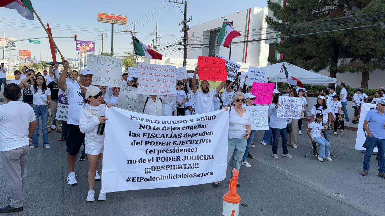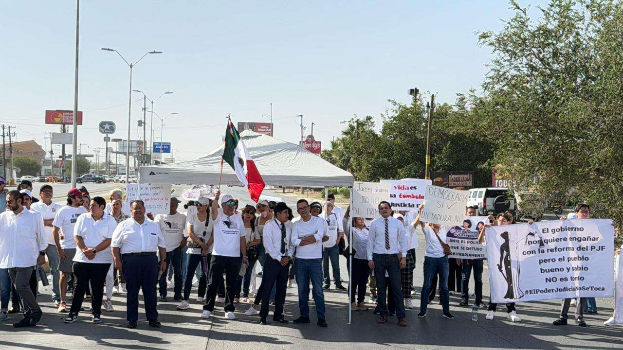 Ciudad Juárez.- Empleados y empleadas del Poder Judicial de la Federación, realizaron hoy una manifestación afuera de sus instalaciones y bloquearon por unos momentos la Avenida Tecnológico.