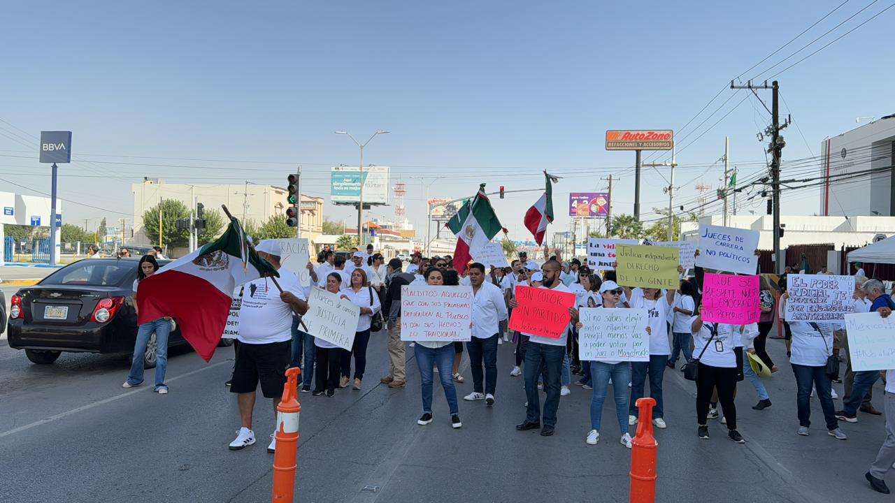 Personal del Poder Judicial de la Federación lanzo consignas y posteriormente bloquearon la avenida Tecnológico y la calle Pedro Rosales de León.
