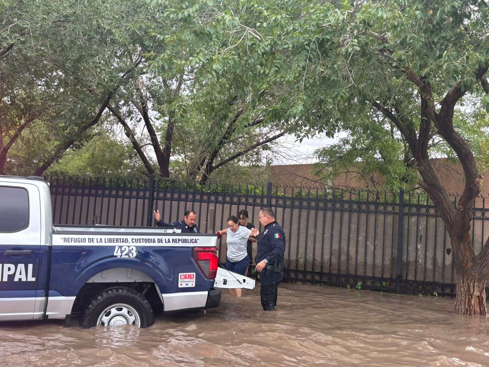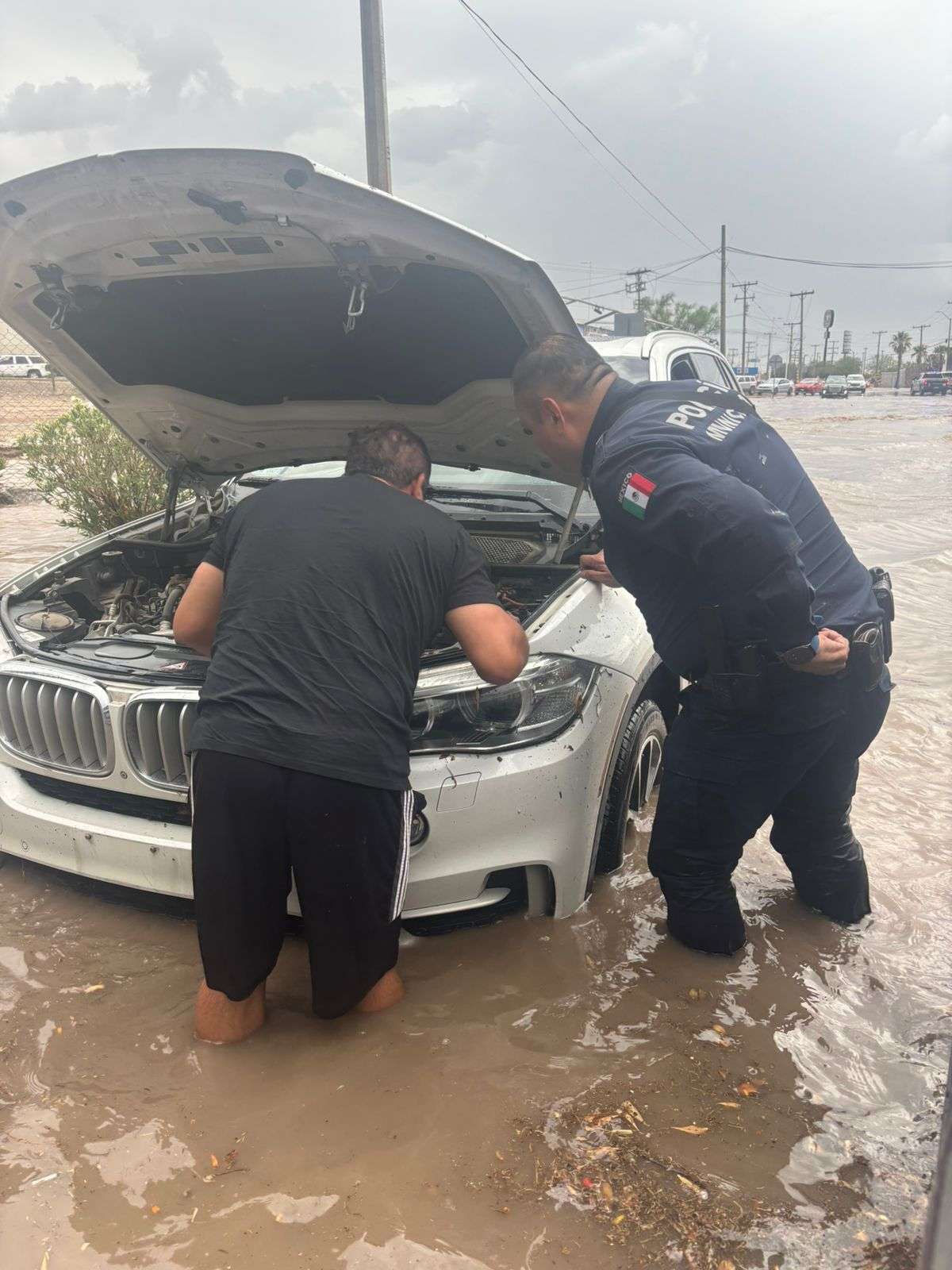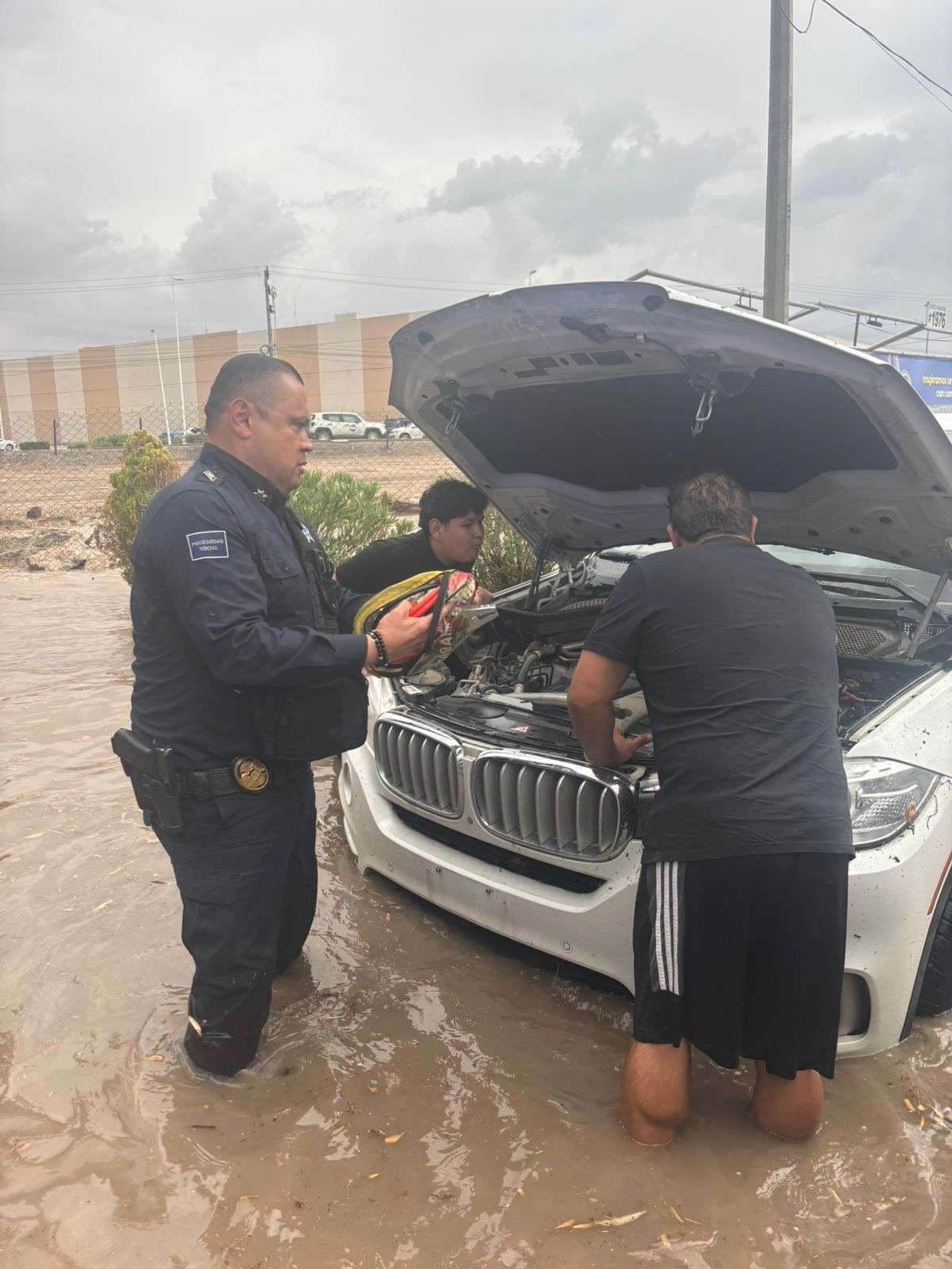Ciudad Juárez.- Policías Municipales continúan realizando apoyos ciudadanos durante esta tarde y noche, a causa de las lluvias que se están presentando.