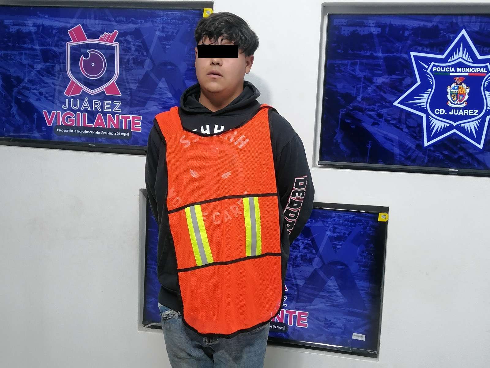Ciudad Juárez.- Agentes de la Secretaría de Seguridad Pública Municipal arrestaron a Ángel Eduardo R. M., por su presunta responsabilidad en la comisión del delito de posesión de vehículo con reporte de robo.