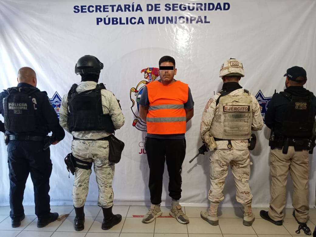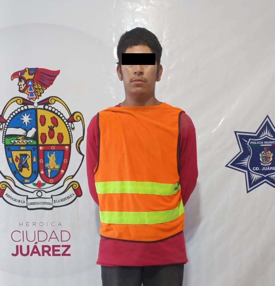 Víctor Manuel U. U. de 22 años, fue detenido en el cruce de las calles Sierra Madre del Sur y Oscar Flores, en la colonia El Jarudo, luego de cometer una falta administrativa, por lo que al consultar sus datos generales en el Sistema de Plataforma Juárez, se tuvo conocimiento que cuenta con dos órdenes de aprehensión vigentes en su contra por delitos contra la salud, giradas el 30 de noviembre de 2022, y 30 de marzo de 2023 respectivamente.