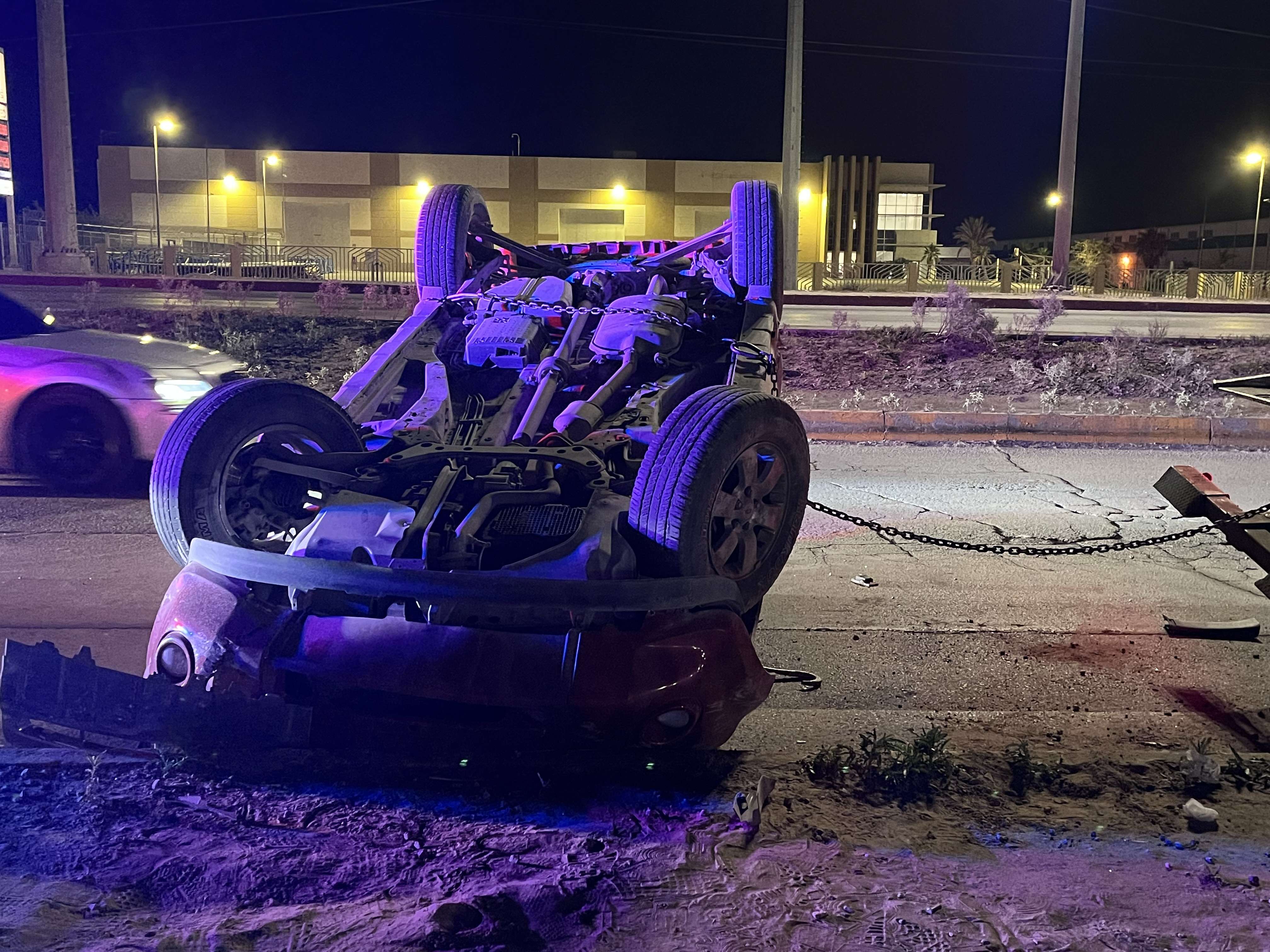 El fuerte golpe provocó que el conductor de la Ford Escape perdiera el control, se subiera a la banqueta, chocara contra la reja de una empresa maquiladora y finalmente terminara volcado.