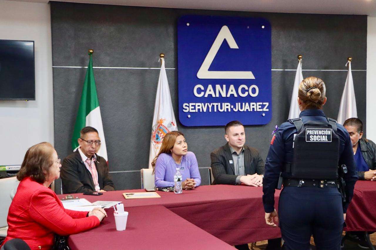 Ciudad Juárez.- La Secretaría de Seguridad Pública Municipal, a través de la Dirección de Prevención Social, llevó a cabo una plática y taller preventivo en las oficinas de Canaco Juárez, ubicada en la Zona Pronaf.