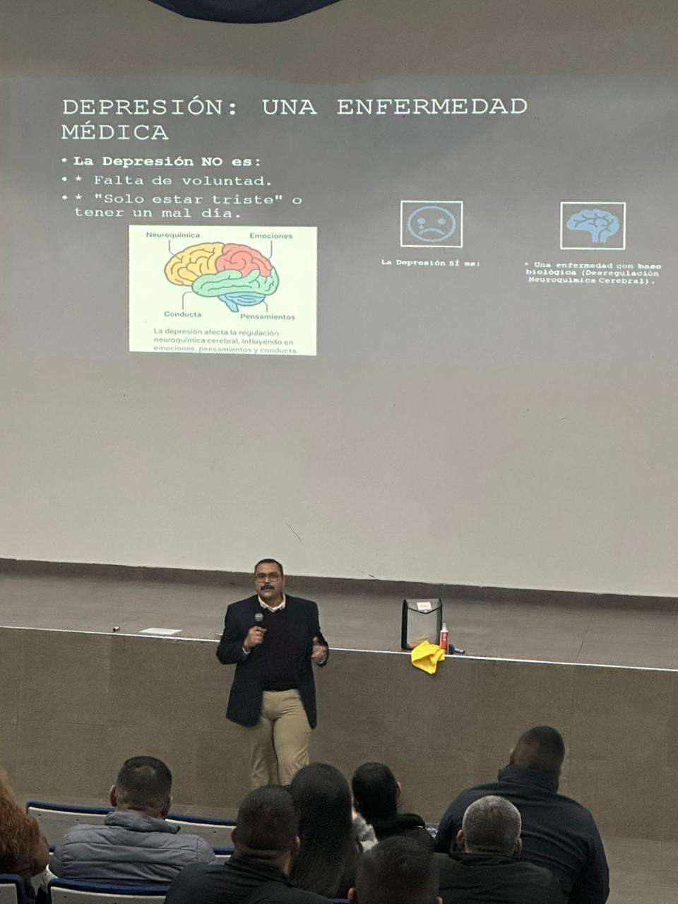 “Entendiendo la depresión y sus consecuencias”, impartida por el Dr. José Guillermo Patiño Trejo, quien abordó los fundamentos neurobiológicos de la depresión y resaltó la relevancia del diagnóstico oportuno.