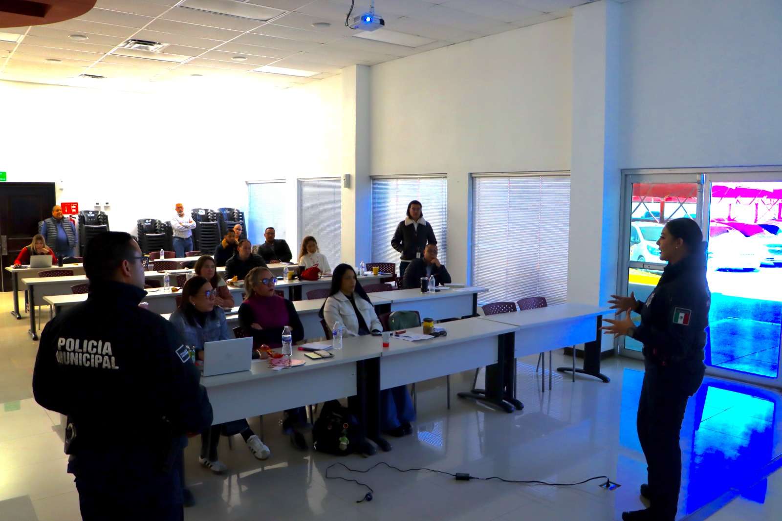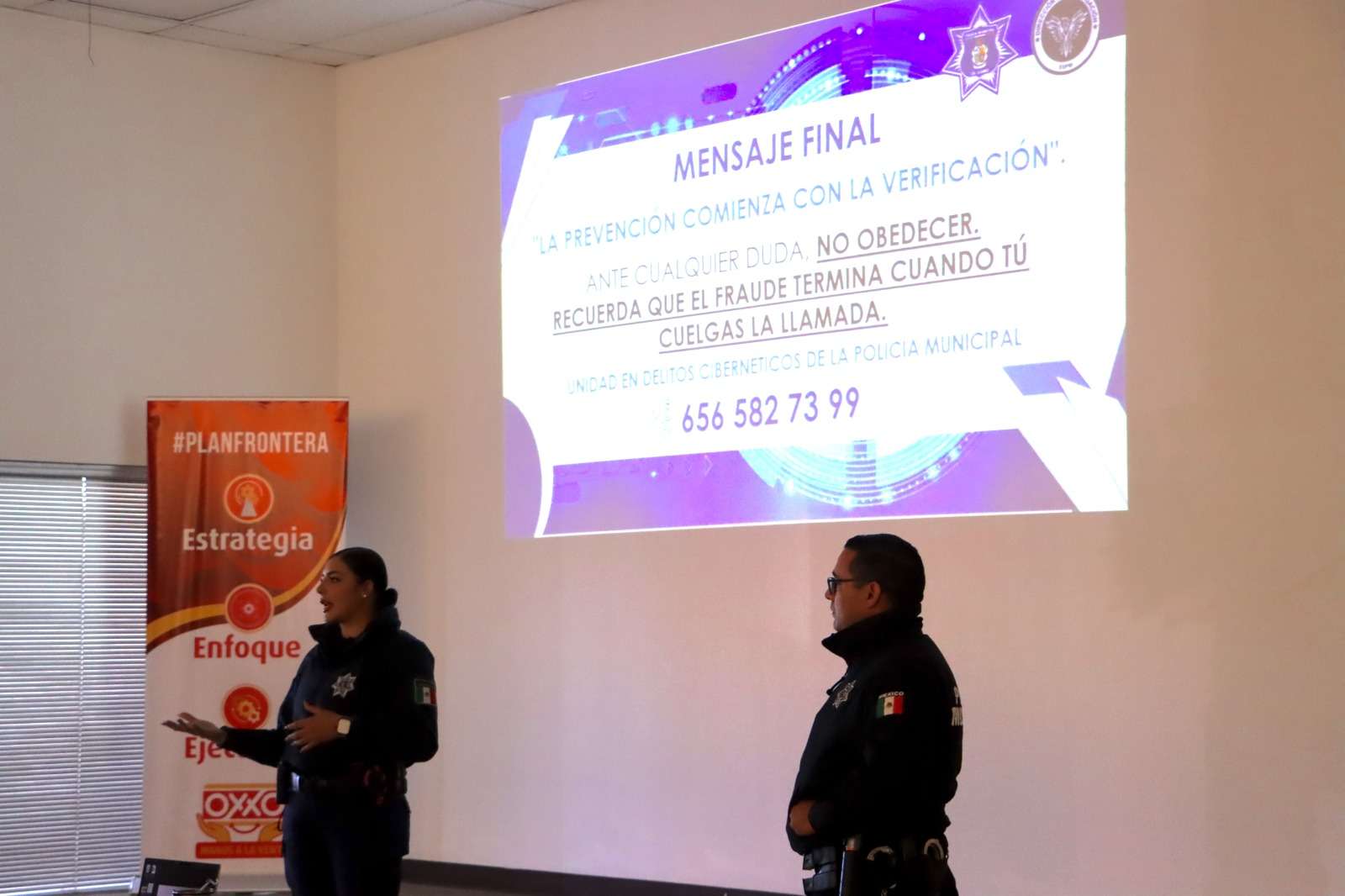Ciudad Juárez.- La Secretaría de Seguridad Pública Municipal, en coordinación con la Dirección de Investigación, a través de la Unidad en Delitos Cibernéticos, impartió una plática preventiva al personal administrativo de la cadena comercial OXXO.