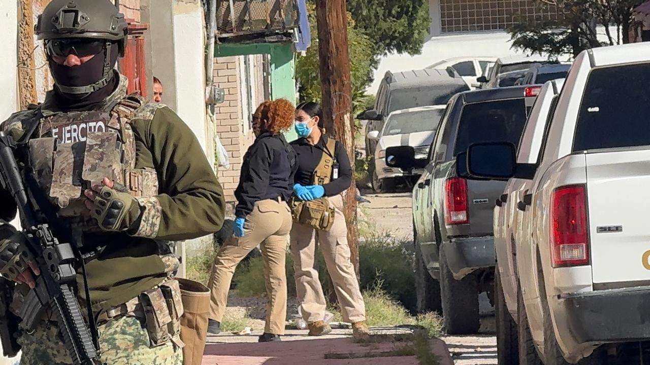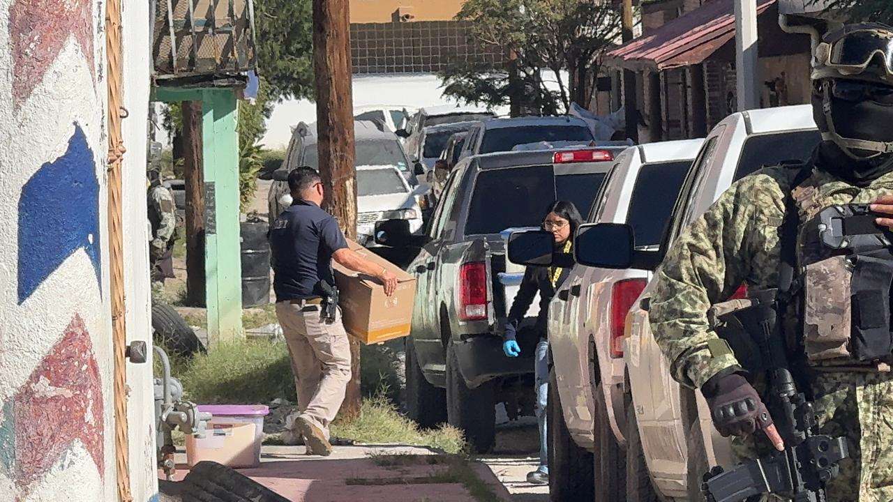Ciudad Juárez.- Agentes de la Fiscalía General del Estado realizan un cateo en una vivienda aledaña a la Funeraria del Carmen.
