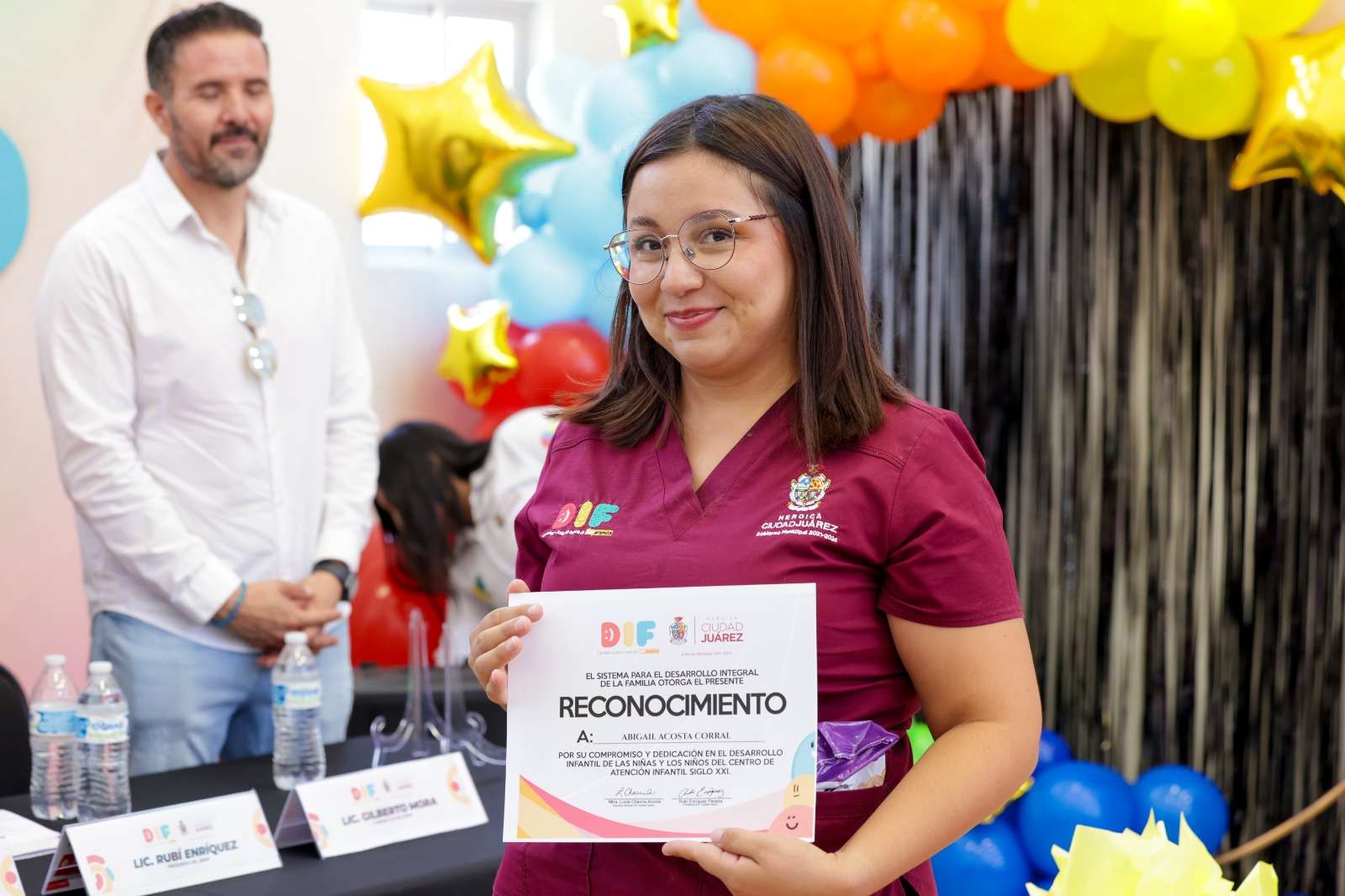 Ciudad Juárez.-La Presidenta del Sistema del Desarrollo Integral de la Familia de Juárez, (DIF), Rubí Enríquez Parada, celebró este día los logros de varios infantes bajo el cuidado del Centro de Atención Infantil, (CAI) Siglo XXI.
