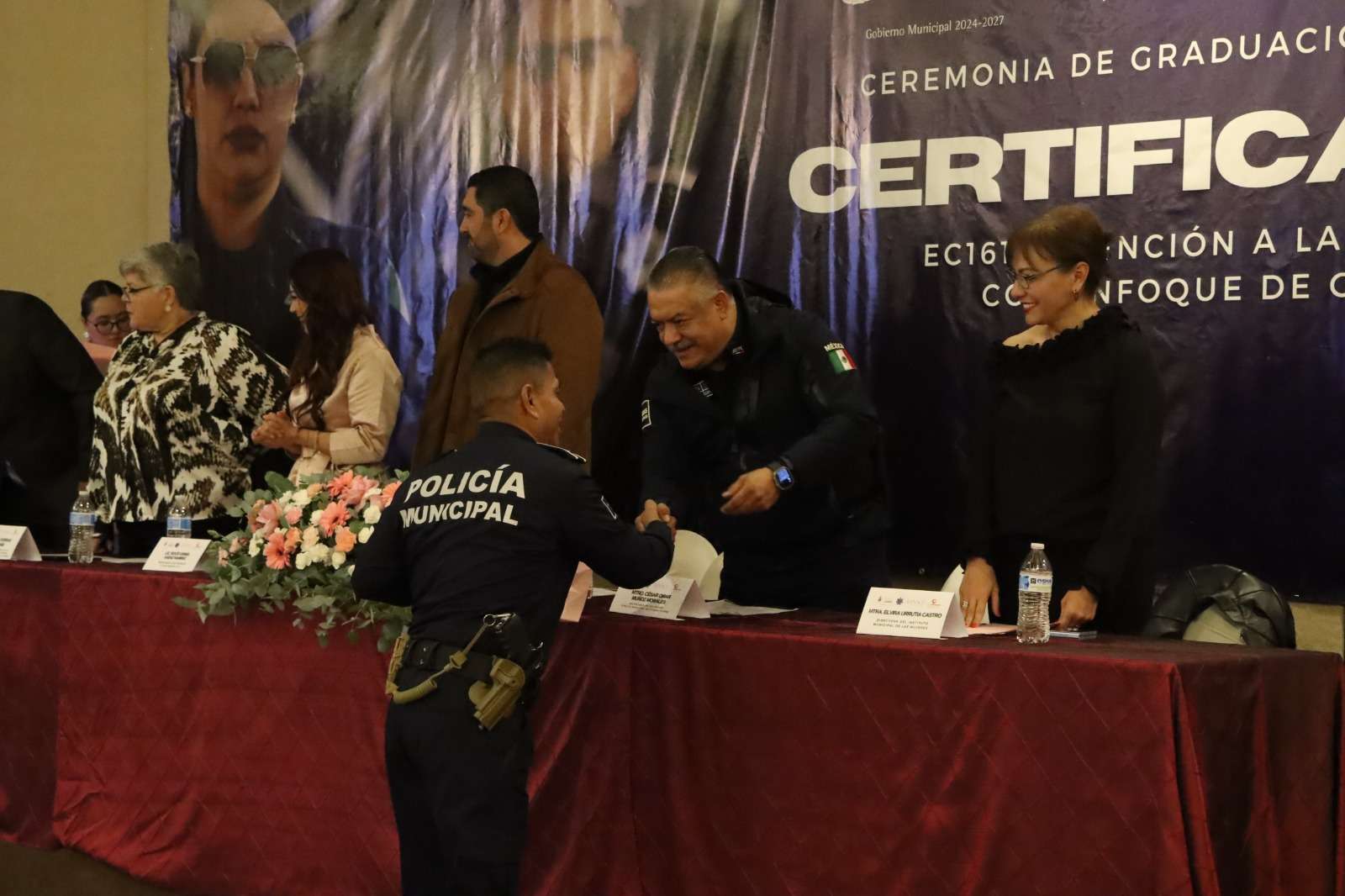 Así mismo el presidente municipal, Cruz Pérez Cuellar, reconoció la disposición de las y los policías, así como el interés y el compromiso por parte del secretario de seguridad pública municipal, César Omar Muñoz Morales, de mantener una policía altamente capacitada.