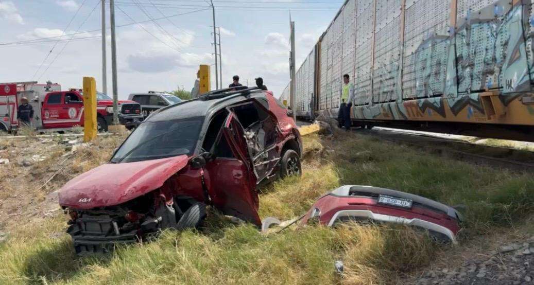 Ciudad Juárez.- La conductora de una camioneta Kia color guinda intentó ganarle al tren y su automóvil fue impactado por lo que resultó con lesiones leves.
