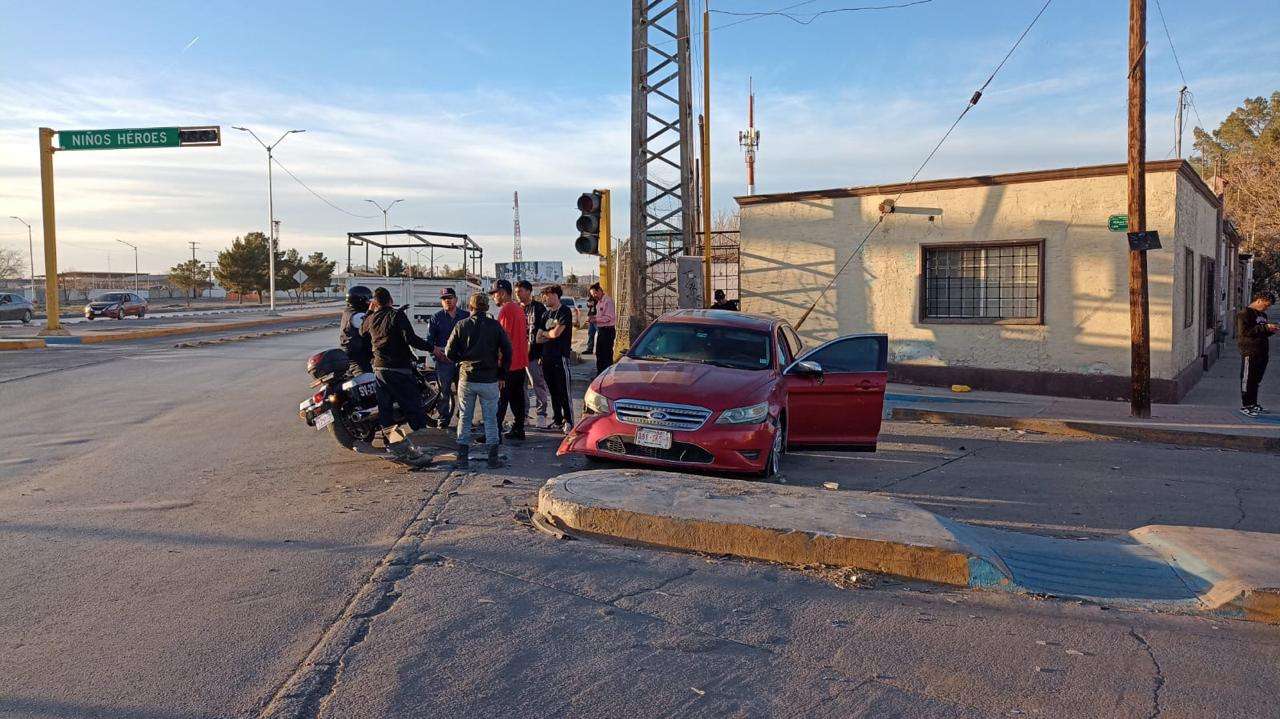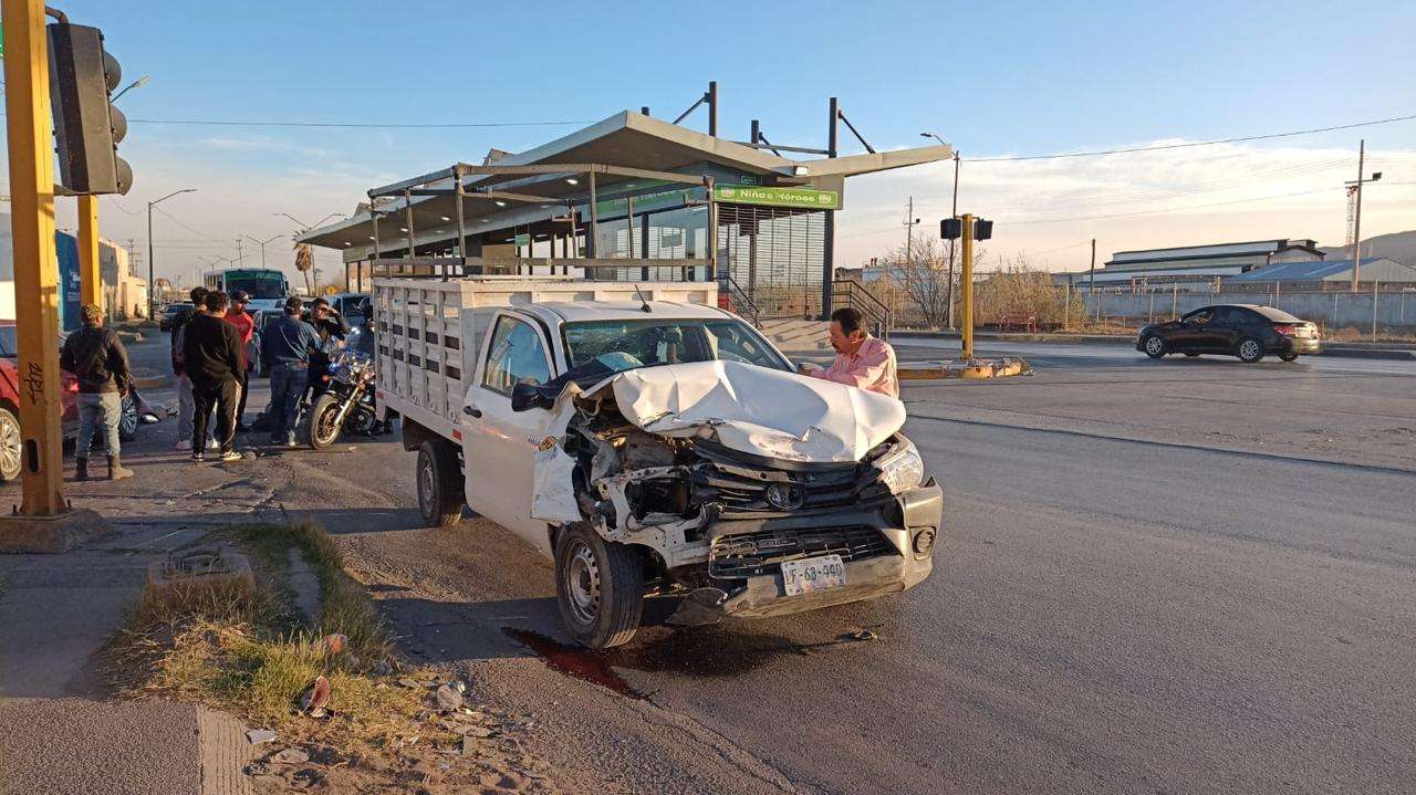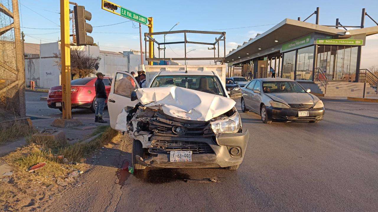 Ciudad Juárez.- Un accidente de tránsito se registró en el cruce de las calles Niños Héroes y Eje Vial, cuando una camioneta Toyota Hilux impactó a un vehículo Ford Taurus.