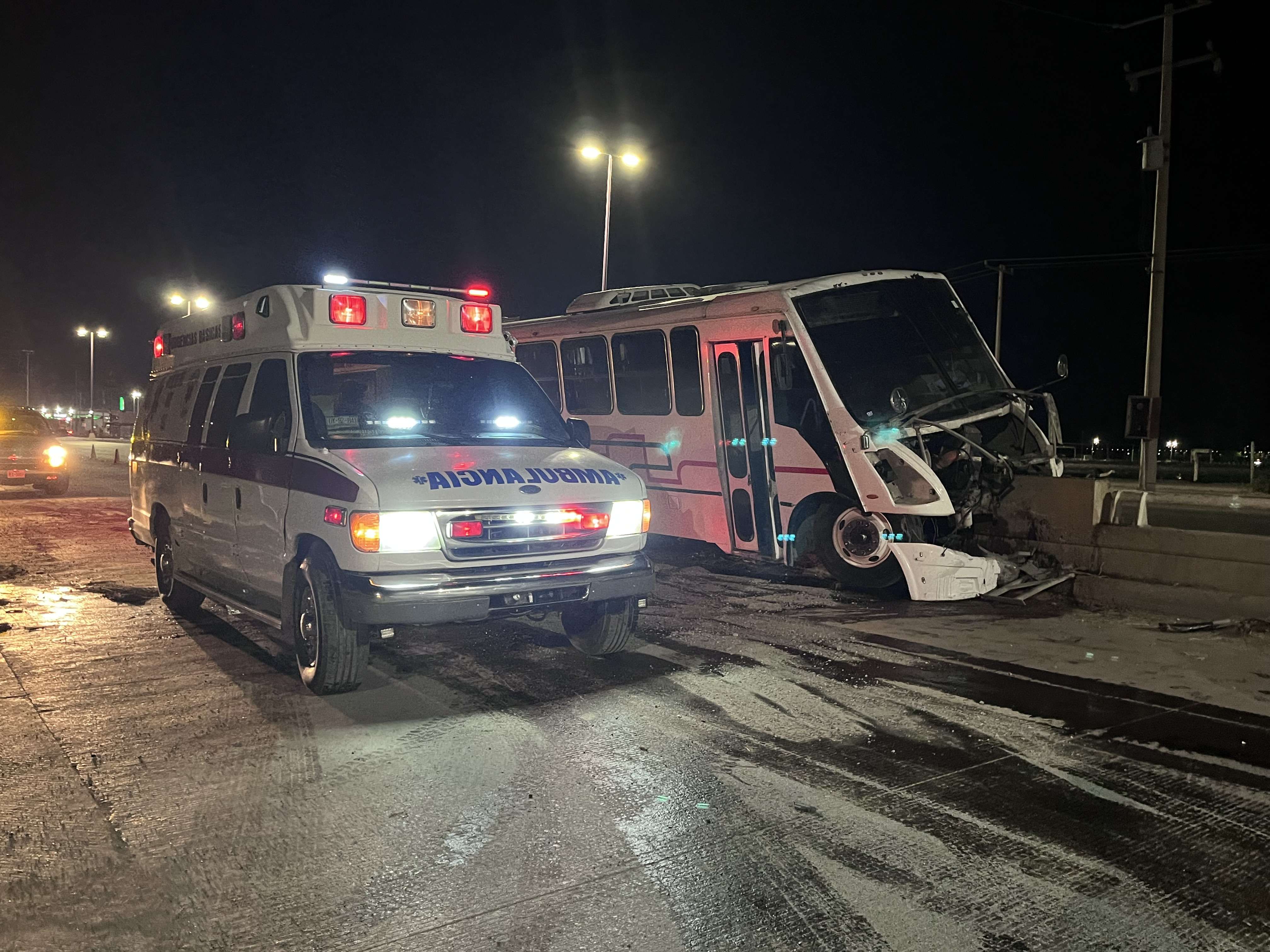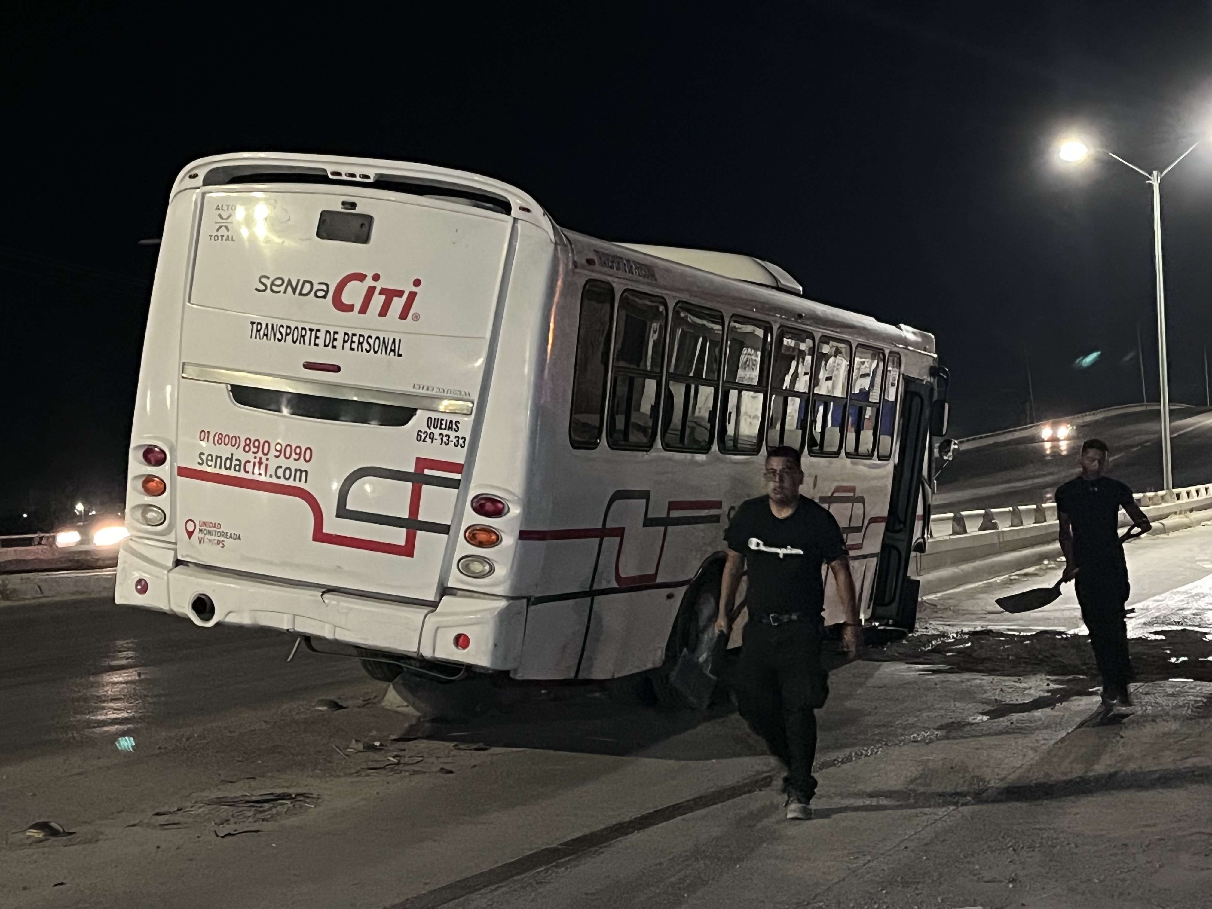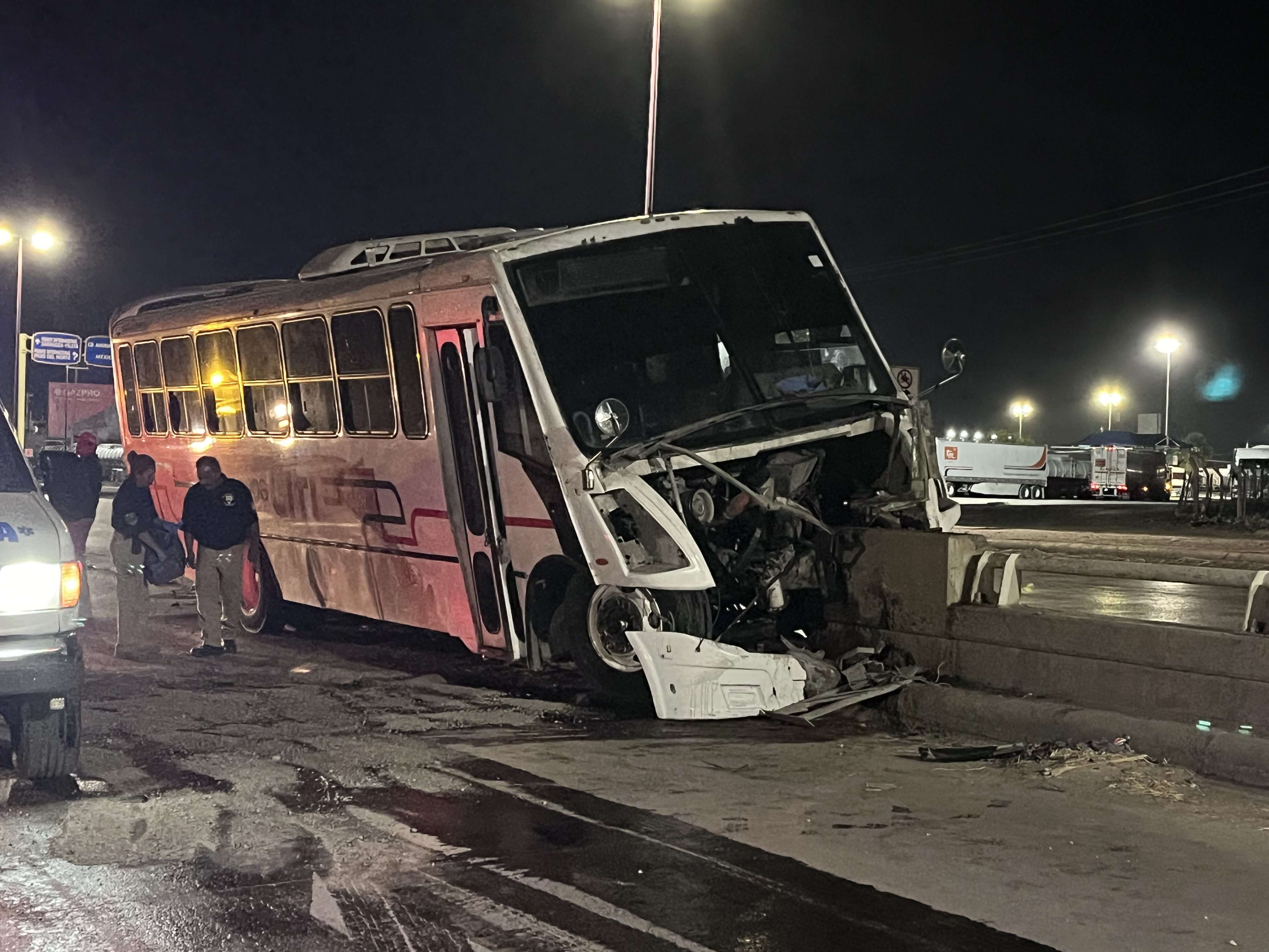 Ciudad Juárez.- El conductor de un camión de transporte de personal chocó contra el muro de un puente sobre la carretera a casas grandes, al conducir en estado etílico.