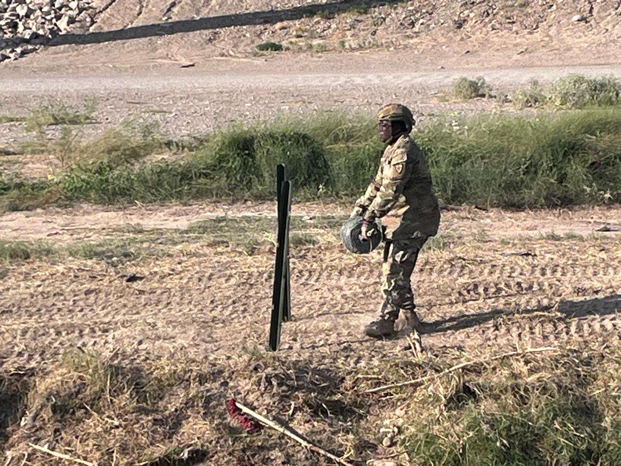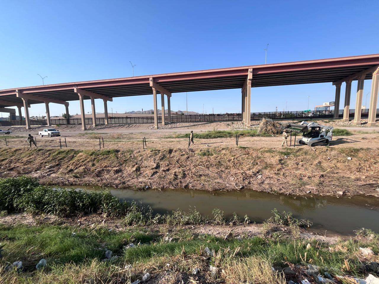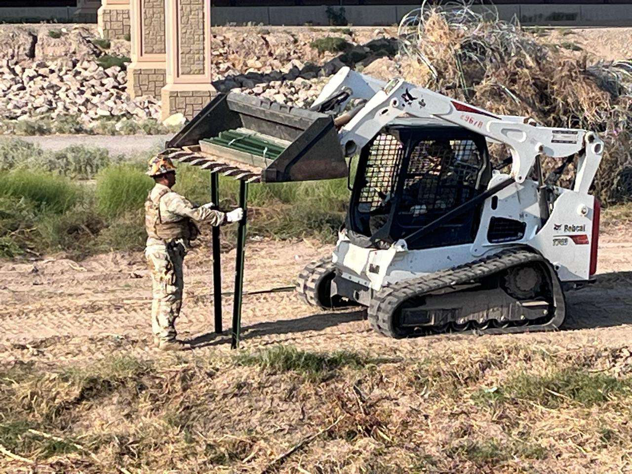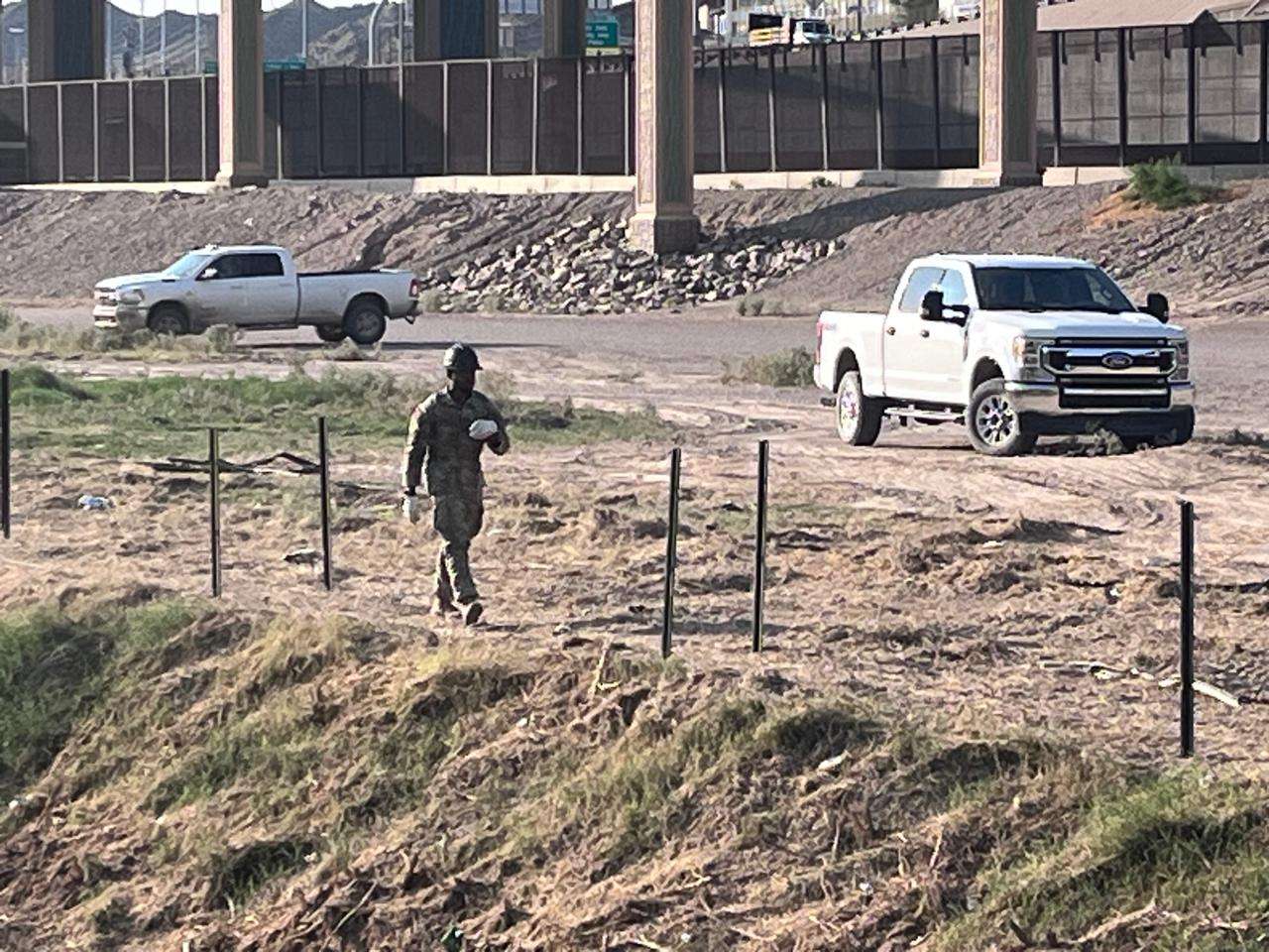 Ciudad Juárez.- Guardia Nacional de Texas colocó esta tarde alambrado de púas en la frontera.