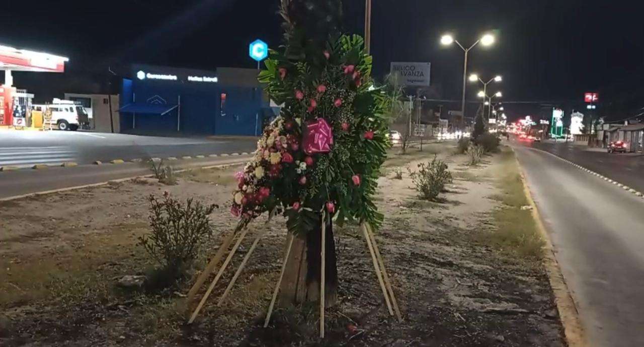 Ciudad Juárez.– Familiares y amigos de tres de las seis personas que perdieron la vida en el trágico accidente ocurrido la noche del domingo sobre la avenida Tecnológico, colocaron este miércoles una ofrenda floral y veladoras en el lugar del siniestro.