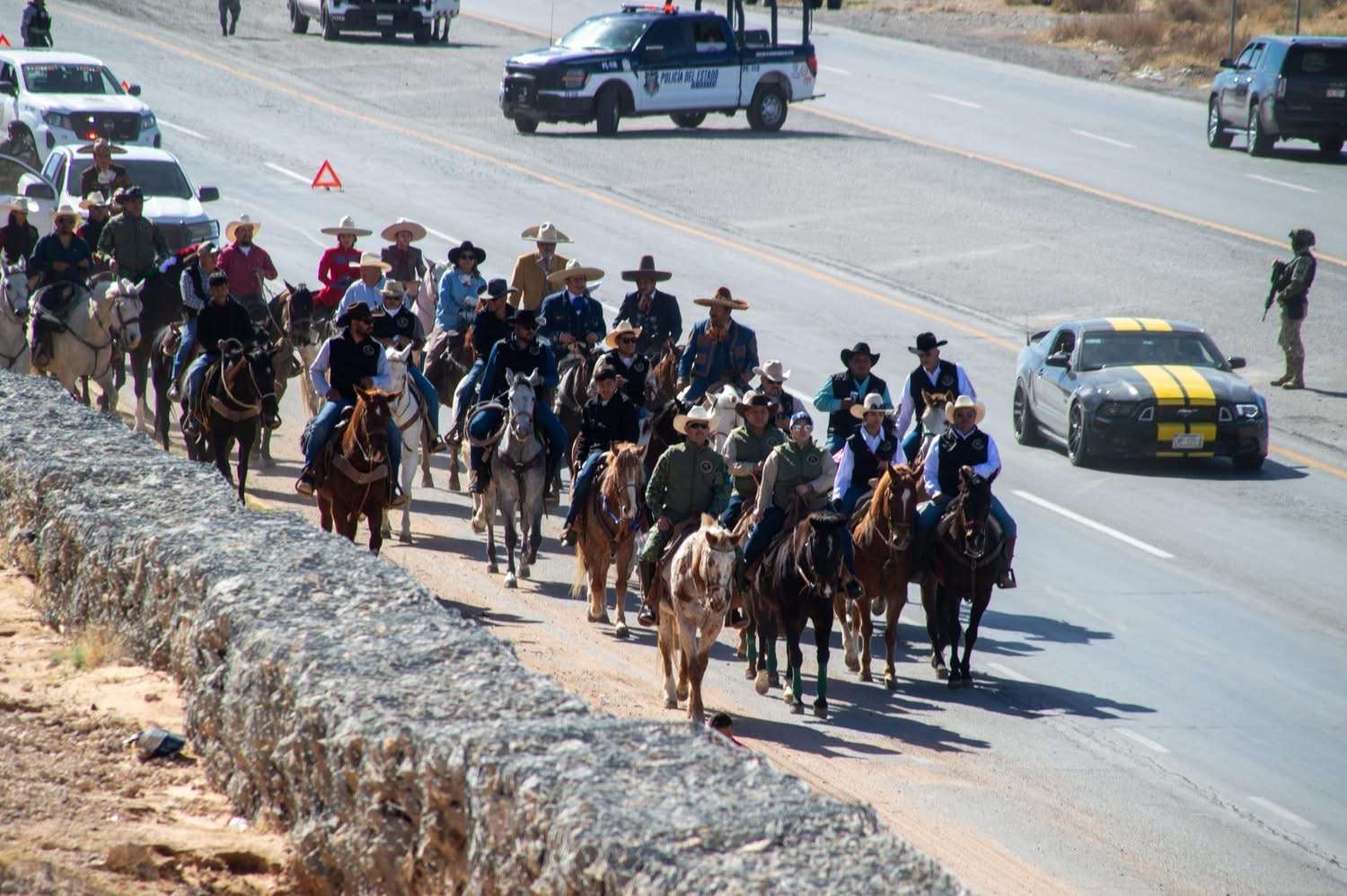 Ciudad Juárez.- Más de 120 jinetes, entre personal militar y civiles, participaron este domingo en una cabalgata conmemorativa organizada por el Noveno Regimiento de Caballería Motorizado en el marco del Mes del Ejército y el bicentenario de la creación del Arma de Caballería.