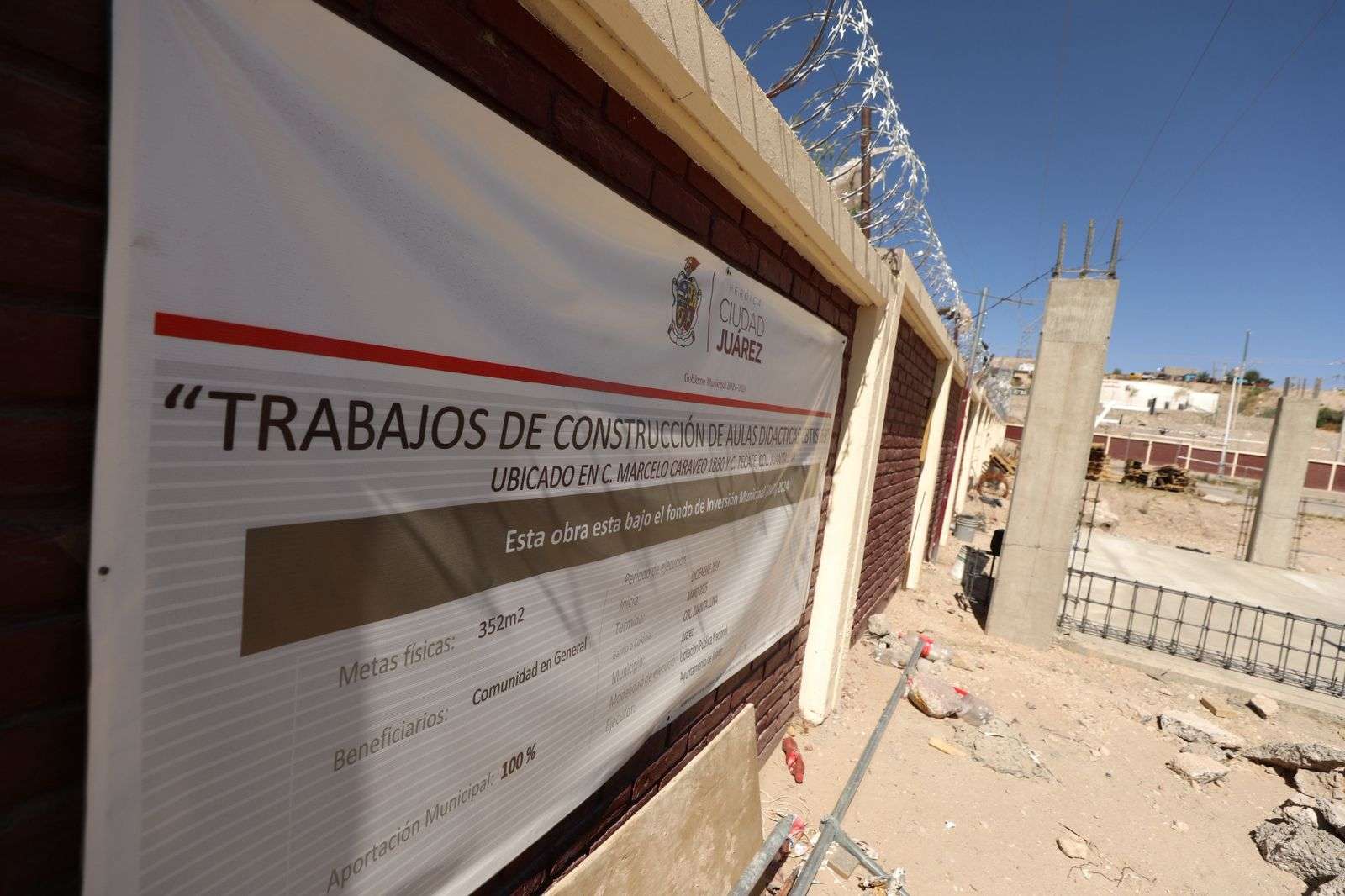Ciudad Juárez.- Como parte de los proyectos del Presupuesto Participativo, la Dirección General de Obras Públicas trabaja en la construcción de unas aulas didácticas en el Centro de Bachillerato Tecnológico Industrial y de Servicios 269 (CBTIS), ubicado en la colonia Juanita Luna.