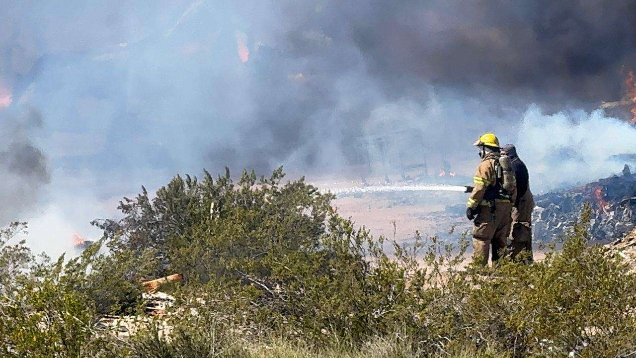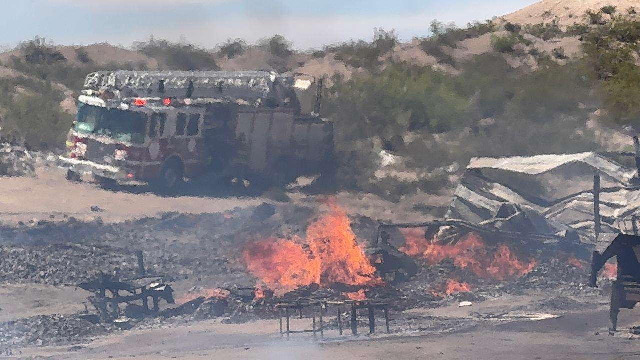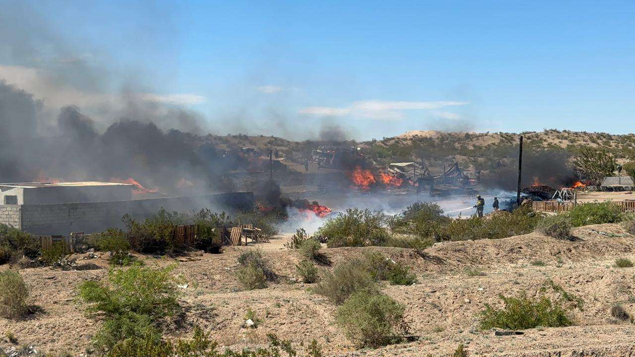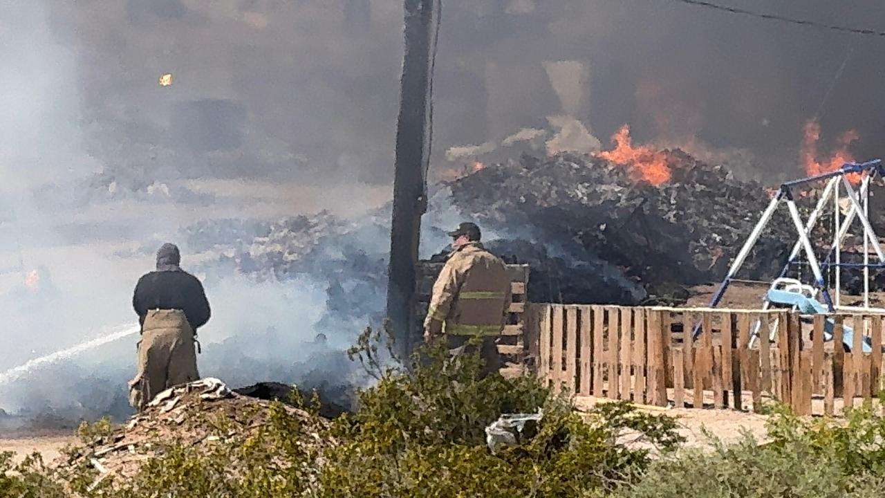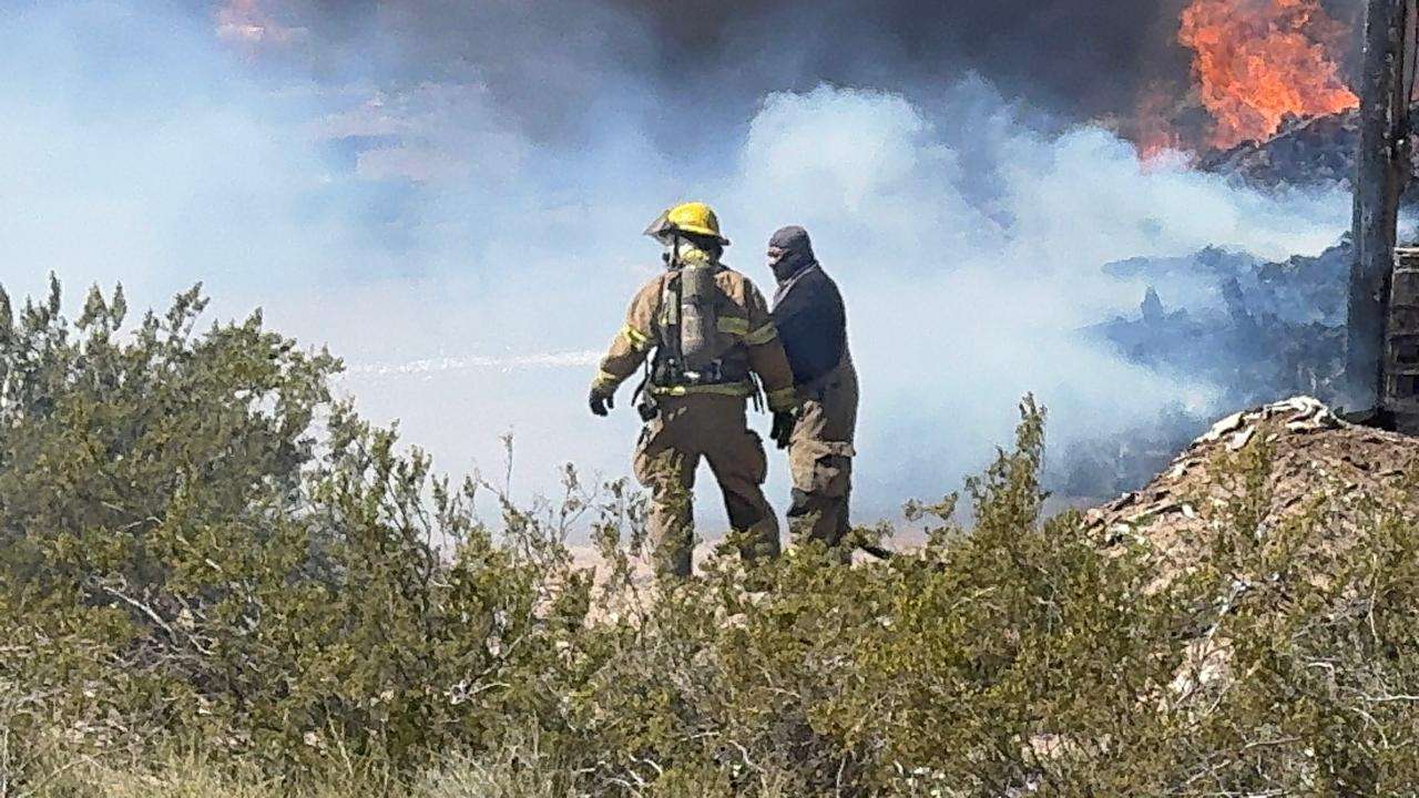 Ciudad Juárez.- Un incendio de gran magnitud se registró en unas casas donde almacenaban tarimas en el poblado de San Isidro.