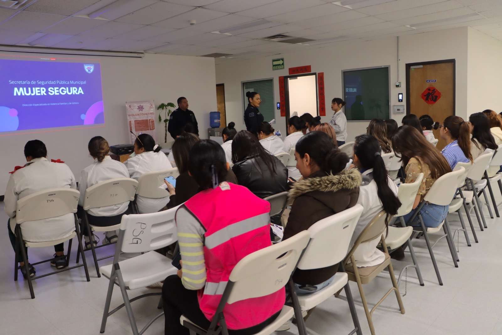 Ciudad Juárez.- La Secretaría de Seguridad Pública Municipal, a través de la Dirección Especializada en Violencia Familiar y de Género (DEVIFG), impartió la plática “Mujer Segura” a personal de la empresa Inventec PSG, con el objetivo de promover la prevención de la violencia y fortalecer la información sobre los mecanismos de apoyo y protección para las mujeres.
