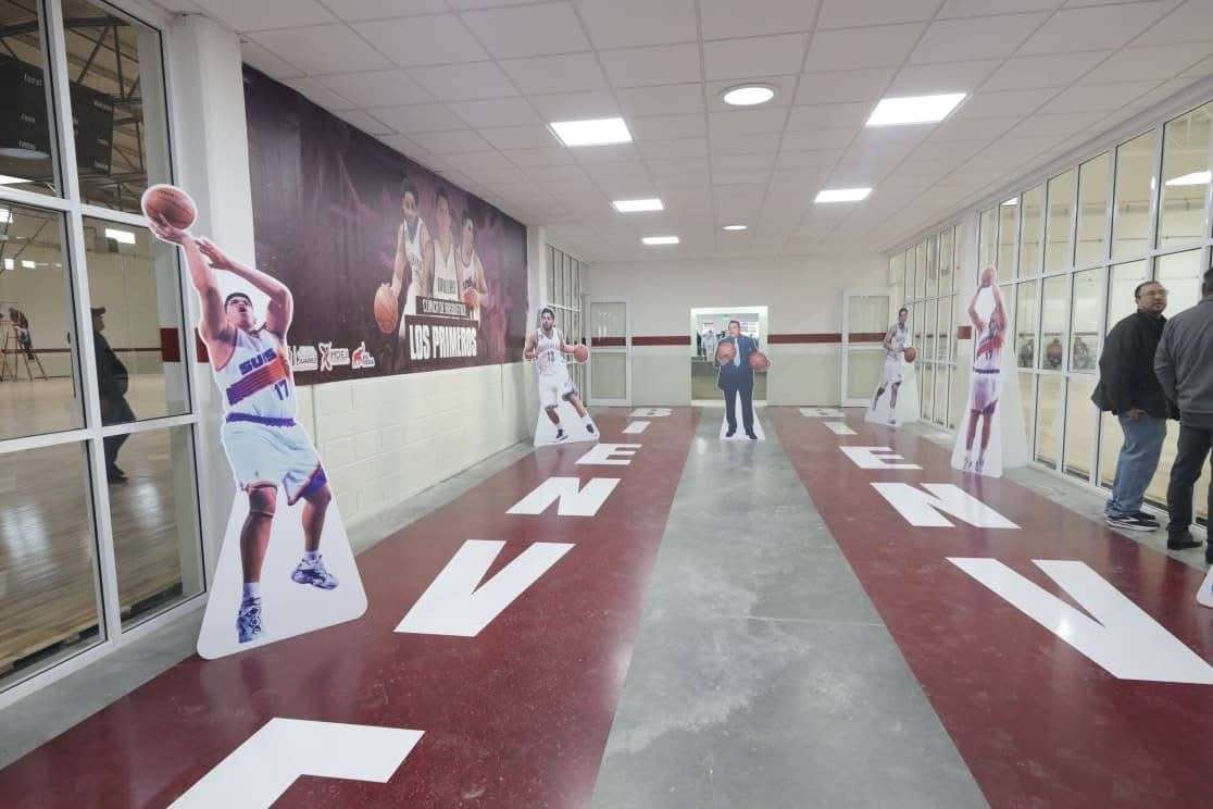 El complejo fue renovado con cuatro canchas transversales de básquetbol y una cancha central con medidas oficiales, además de una nueva estructura que conecta ambas naves con área de convivencia, módulos sanitarios y vestidores.