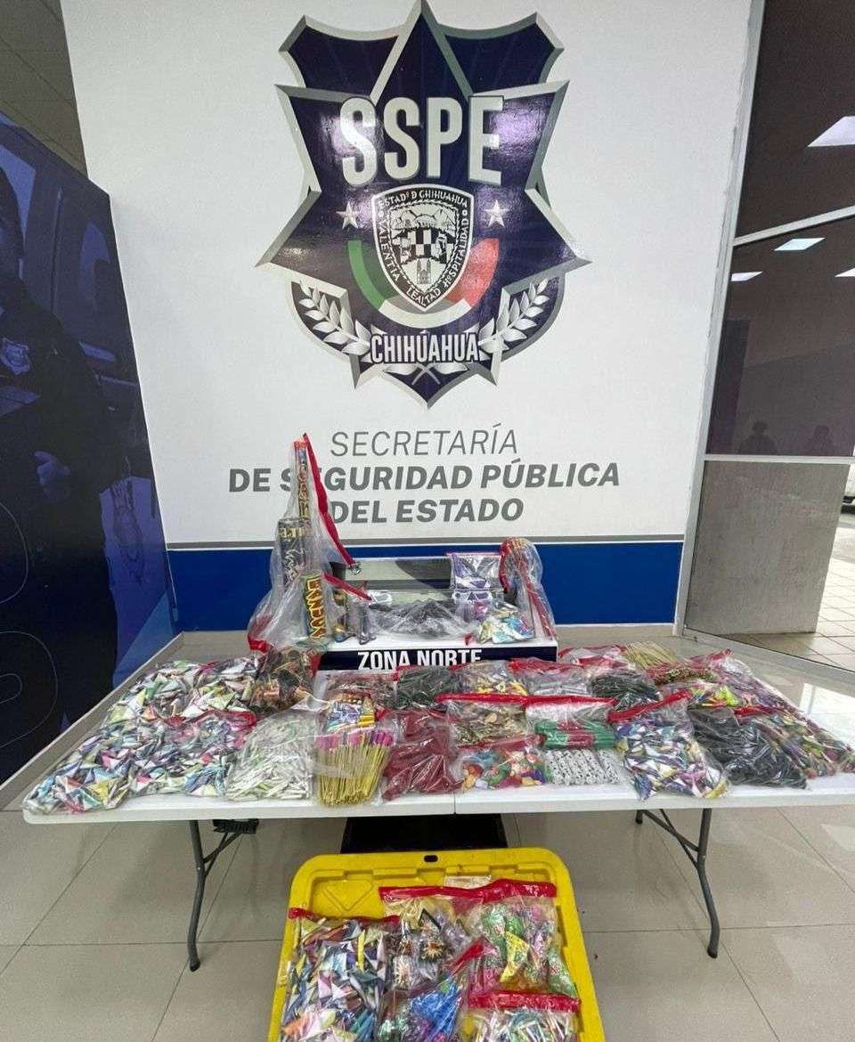 Ciudad Juárez.— Durante la última semana de diciembre, la Secretaría de Seguridad Pública del Estado (SSPE) aseguró diversas cantidades de pirotecnia y artefactos explosivos en distintos operativos realizados en Ciudad Juárez, como parte de las acciones preventivas implementadas en el marco de las celebraciones de fin de año.