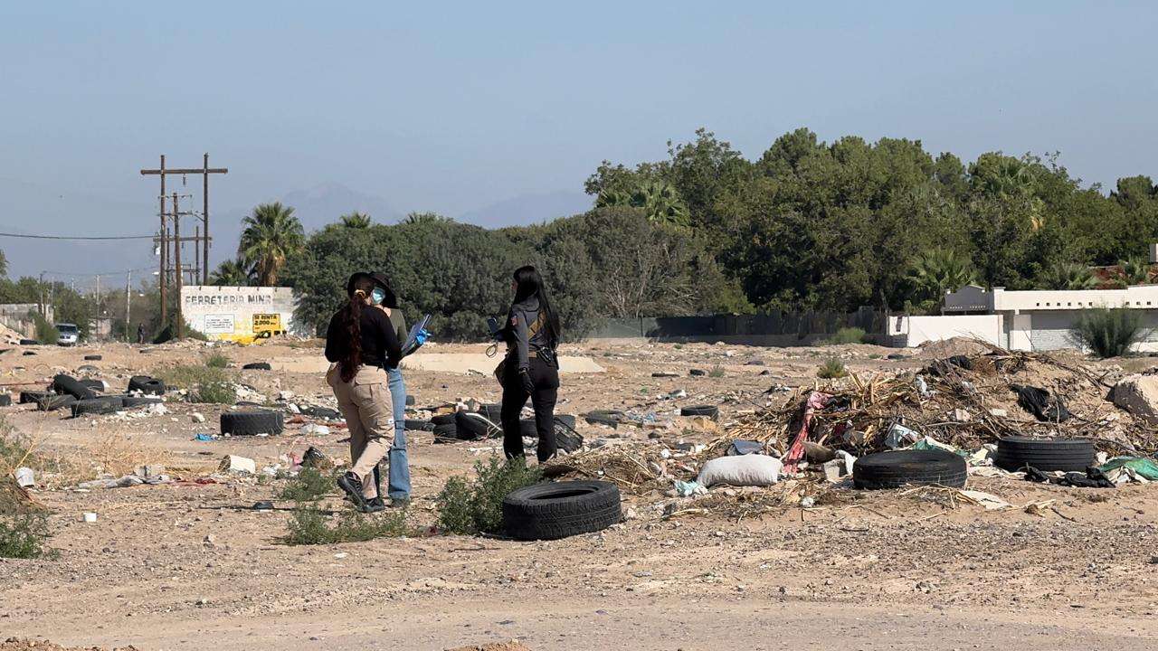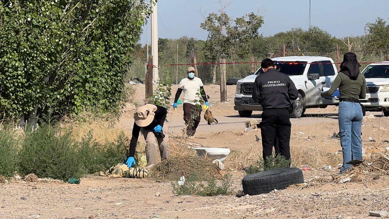 Personas que circulaban por la zona dieron aviso a las autoridades y señalaron que en ese predio ubicado frente a la Alberca San Jorge han dejado en el último mes cinco encobijados.