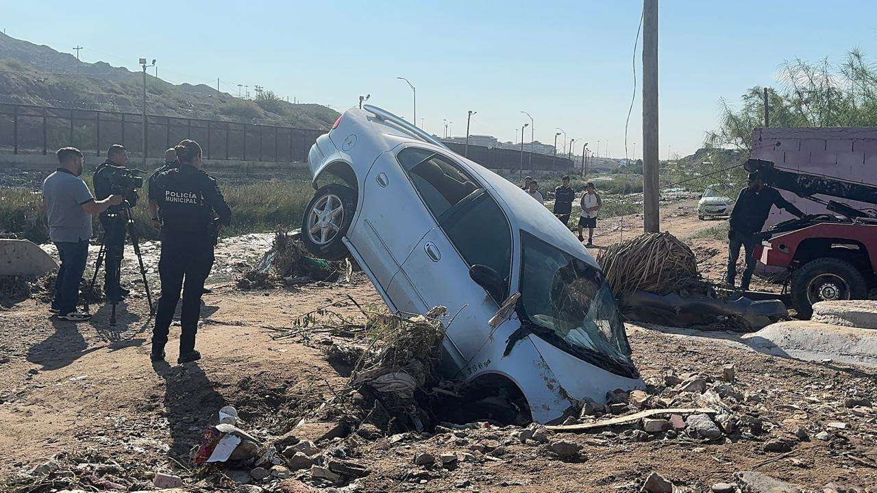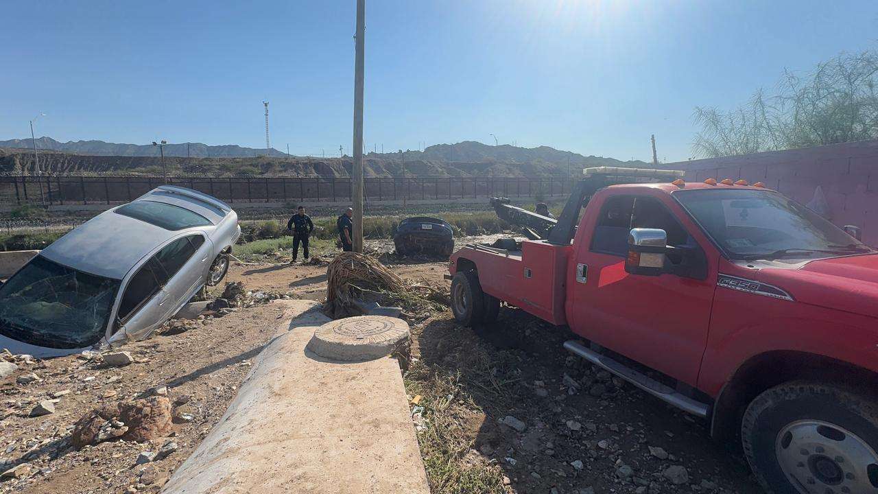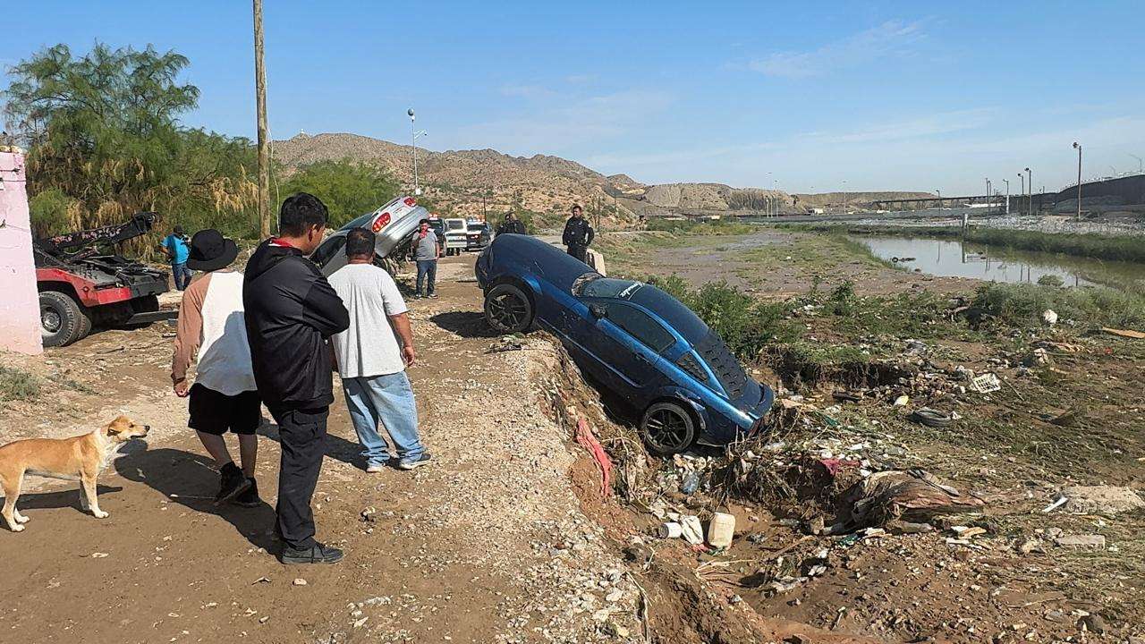 Ciudad Juárez.- Varios vehículos fueron arrastrados en la zona del bordo del Río Bravo donde quedaron varados luego de las lluvias de ayer.