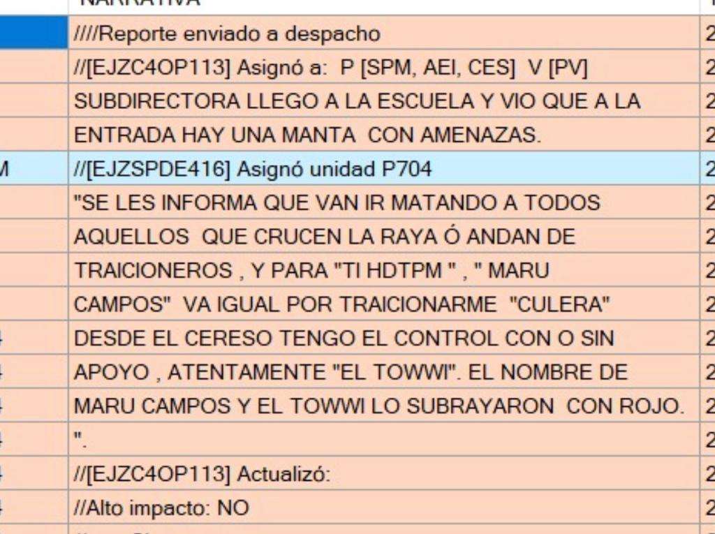 La manta está firmada por "El Towwi" e indica que van a matar a todos aquellos que crucen la raya o anden de traicioneros e incluso tiene una amenaza contra la gobernadora Maru Campos e indica que quien la firma tiene control en el Cereso.
