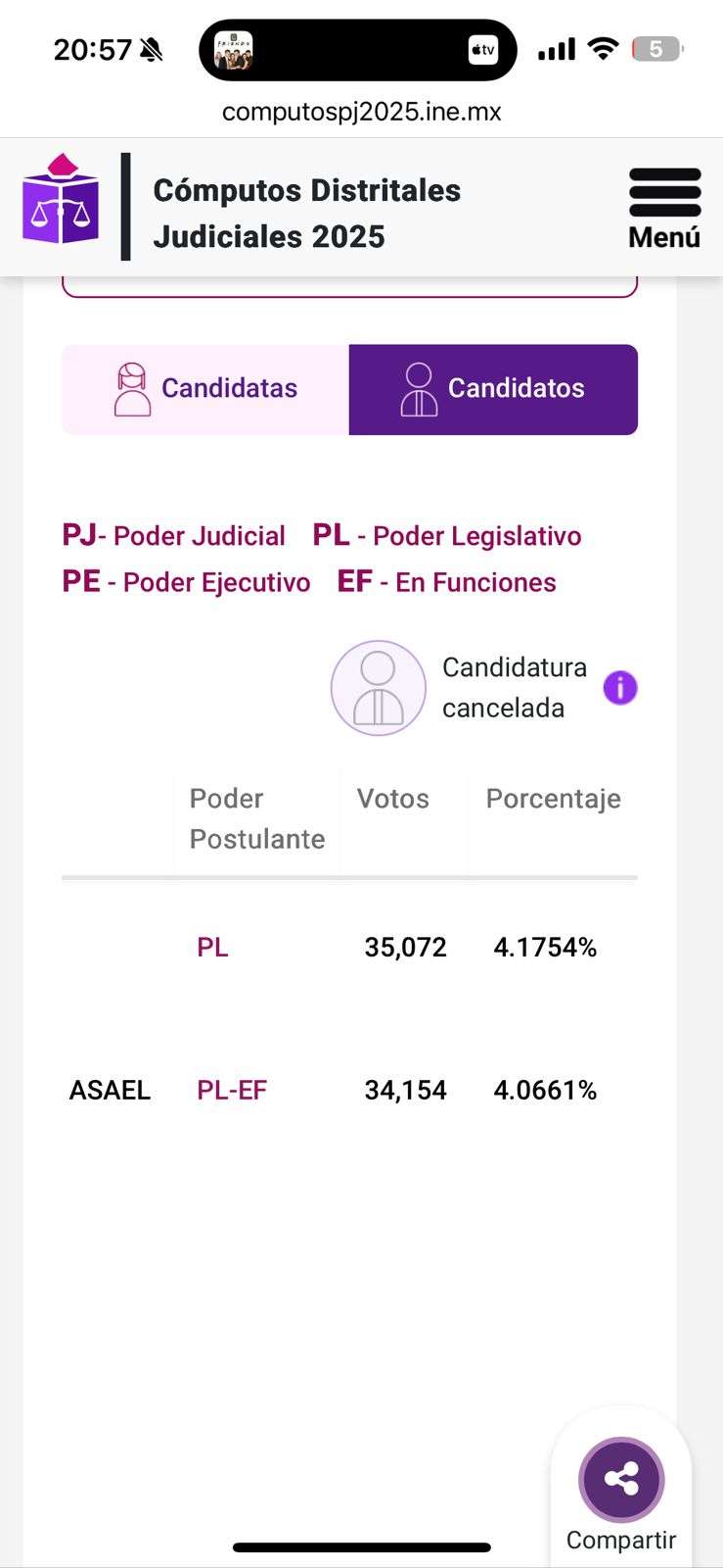 Ciudad Juárez.- Durante el seguimiento en tiempo real de los resultados preliminares de la elección extraordinaria de jueces del Poder Judicial del Estado de Chihuahua, ciudadanos detectaron inconsistencias en los datos publicados por el Instituto Nacional Electoral (INE), específicamente en la contienda entre los aspirantes Max Frederick y Amílcar Estrada.