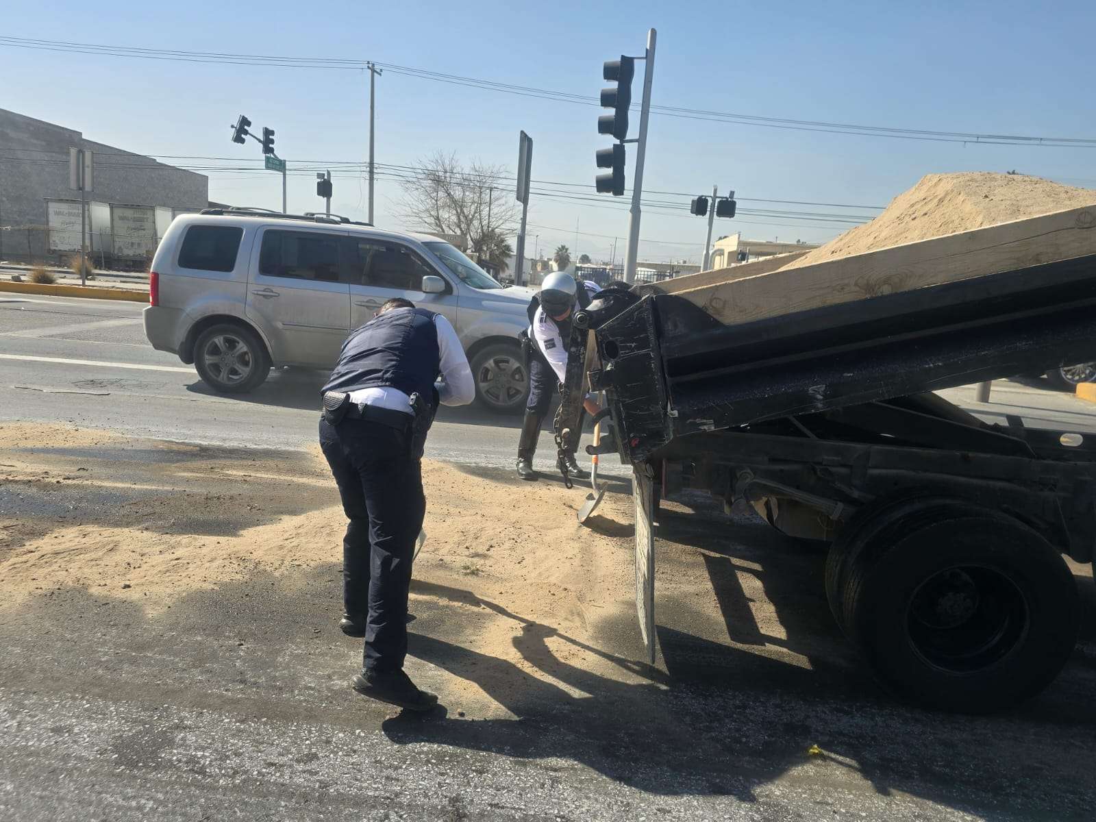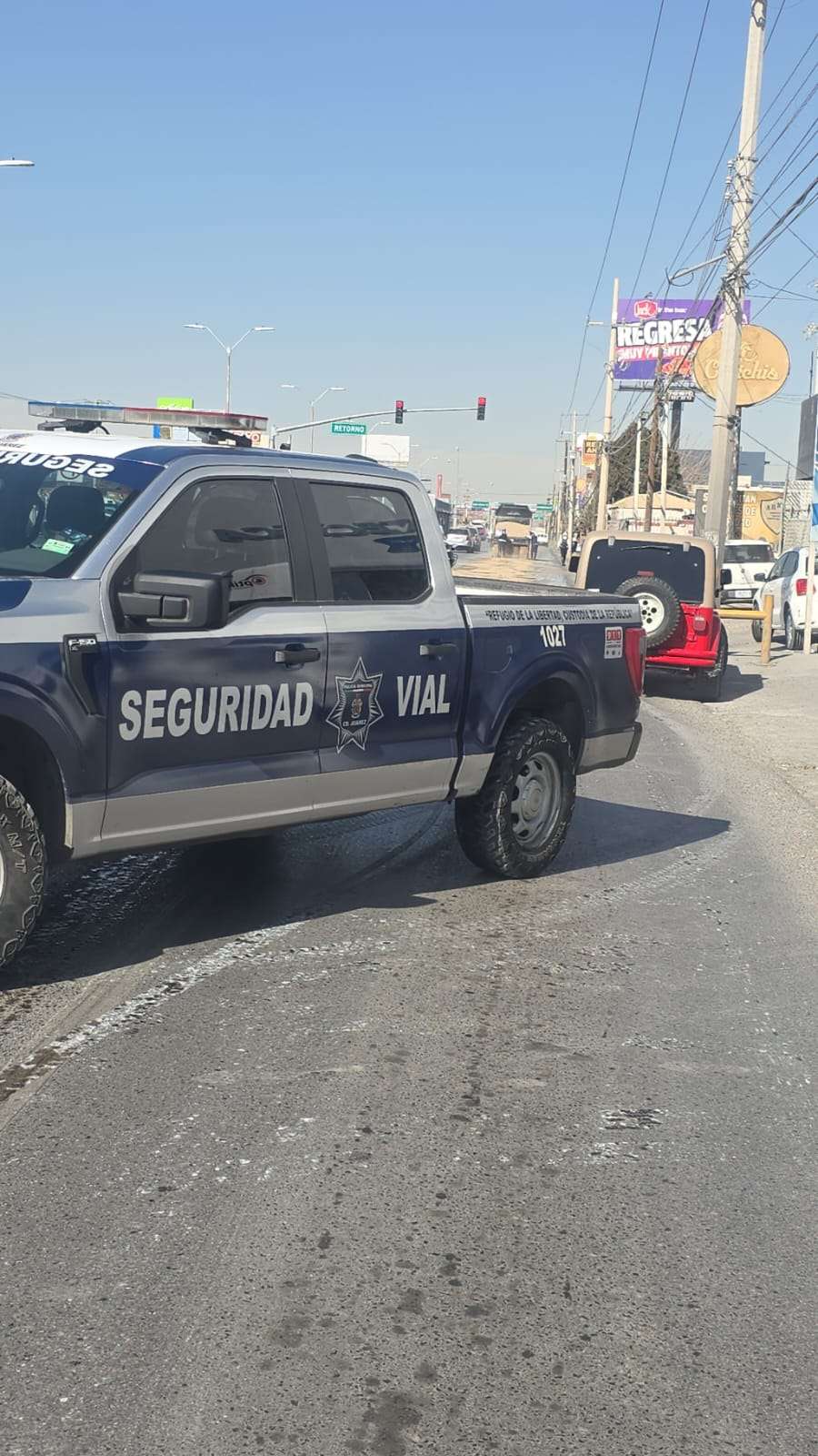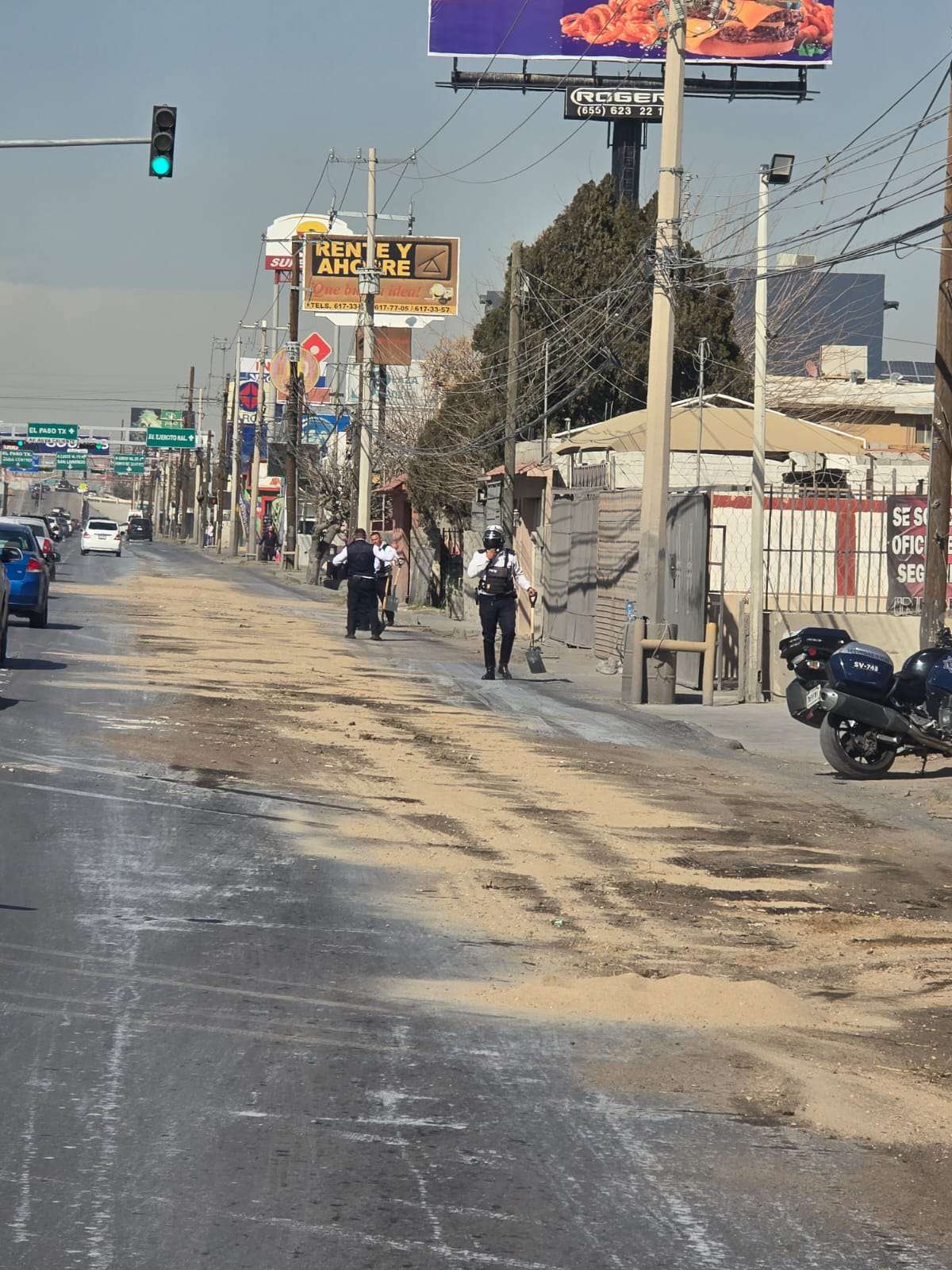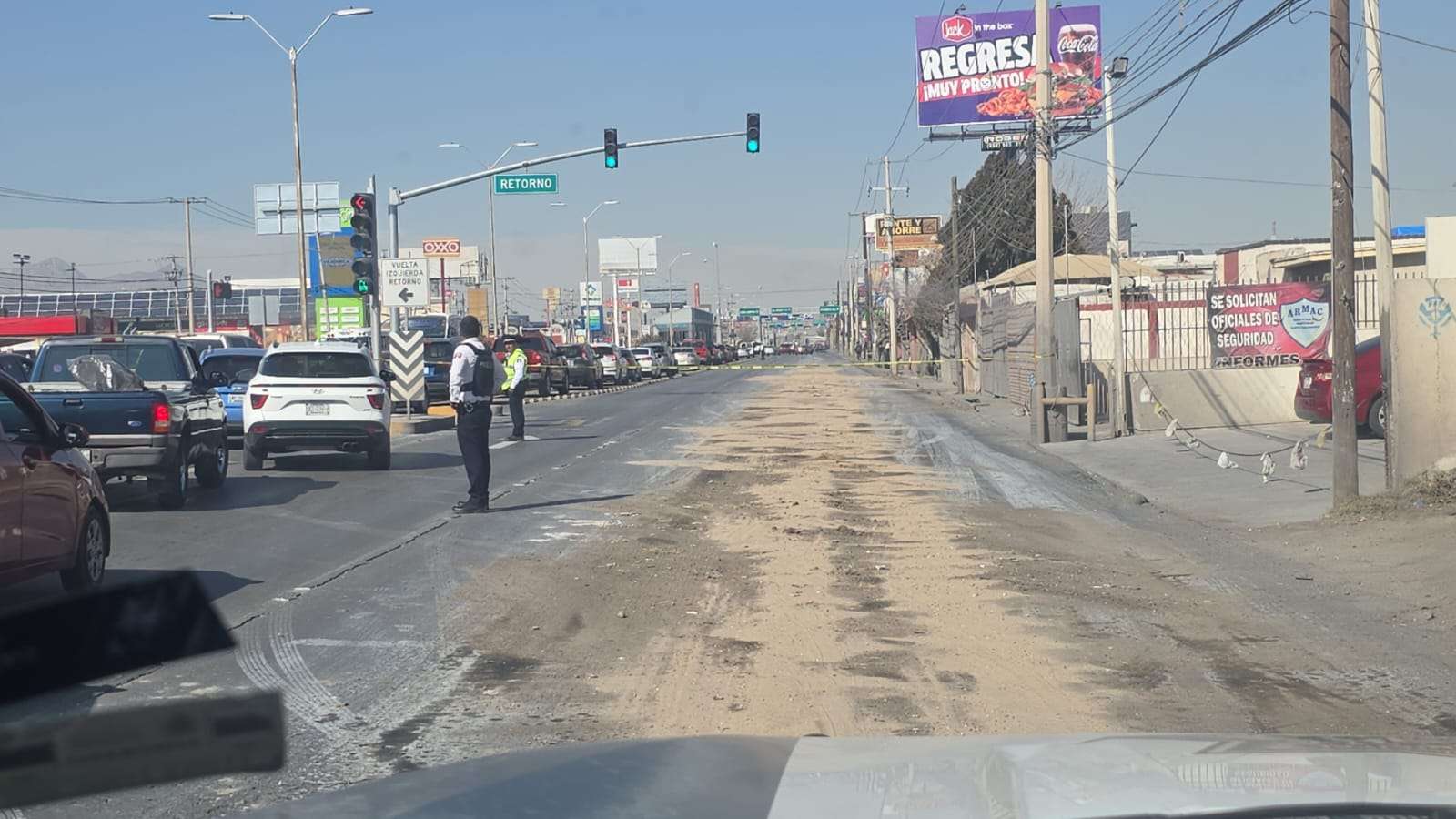 Ciudad Juárez.- Un camión derramó químicos en la avenida Tecnológico, lo cual provocó un choque y fuerte tráfico.