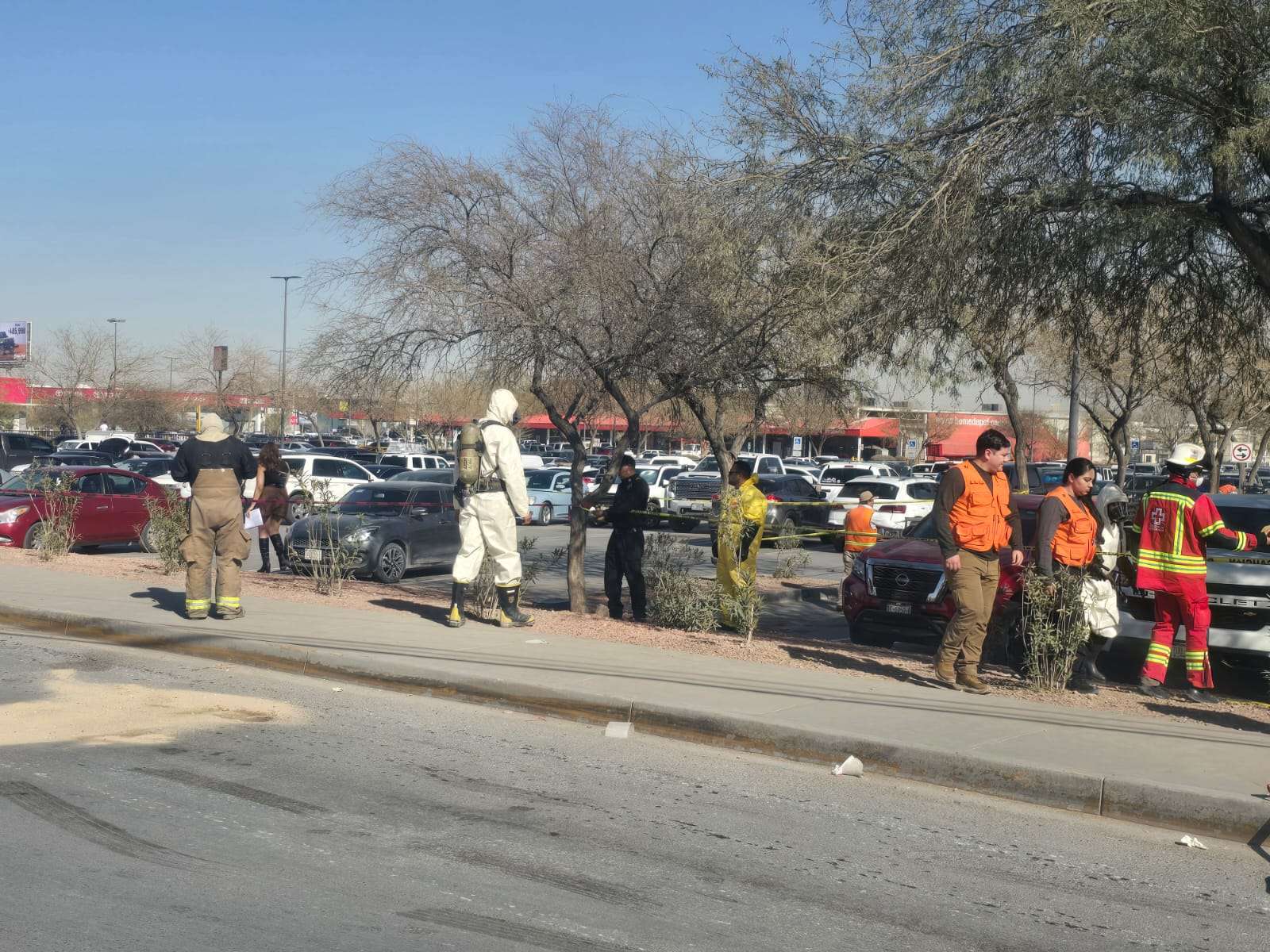 Personal de bomberos llegó hasta el lugar de los hechos con trajes especiales para realizar limpieza.