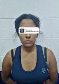 6. Clara María C. S. de 33 años detenida por su probable comisión en el delito de desobediencia y resistencia de particulares en el cruce de las calles Tierra de Fuego y Mar Azul, del fraccionamiento Parajes del Sur.