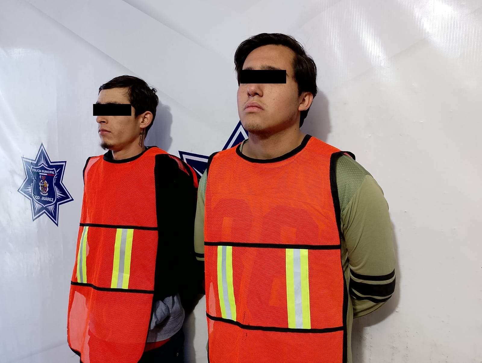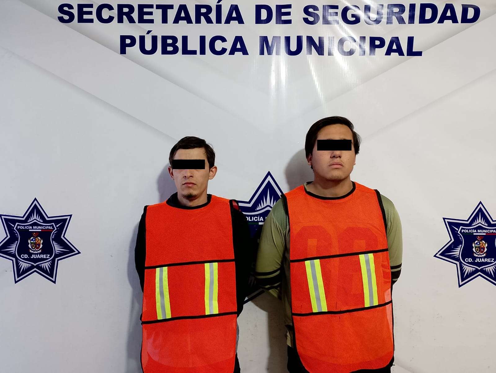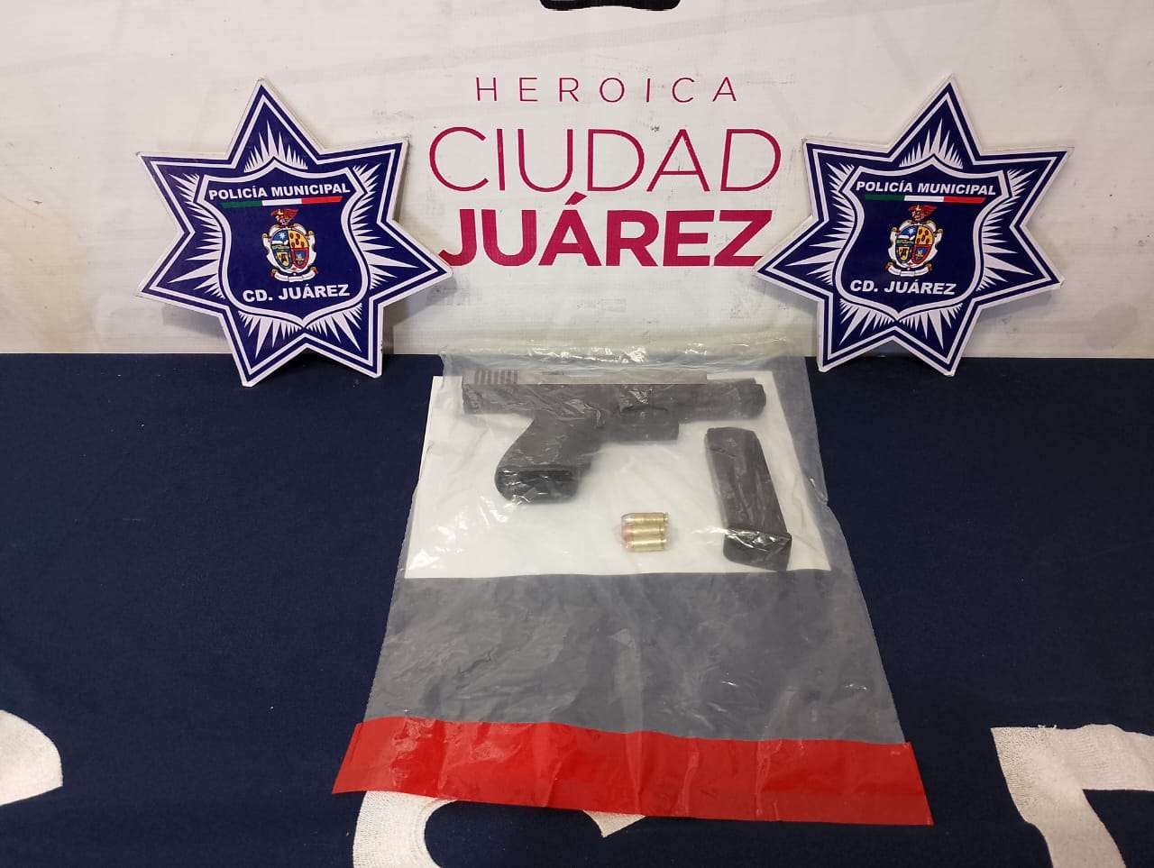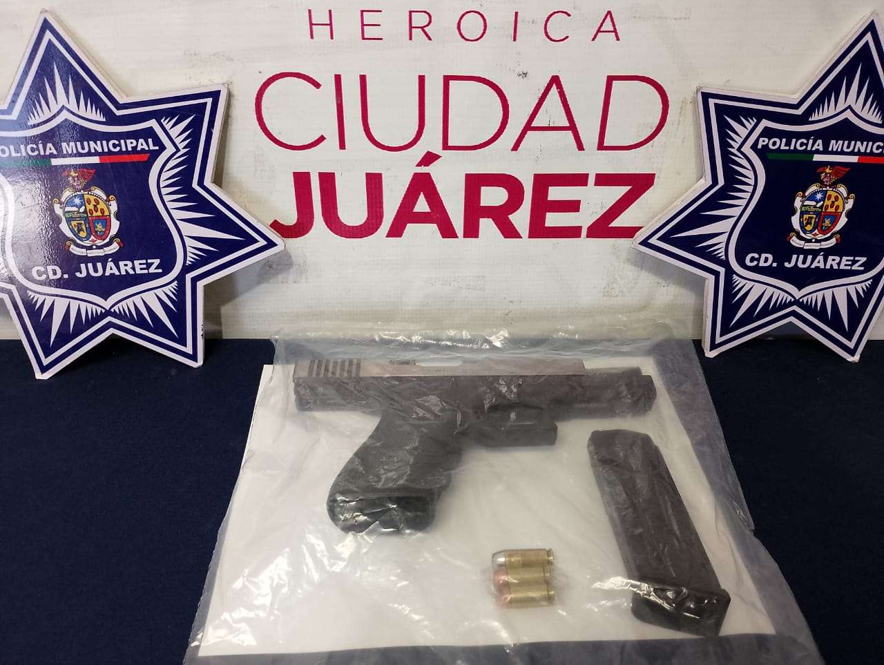 Ciudad Juárez.- Agentes de la Secretaría de Seguridad Pública Municipal detuvieron a Oscar Elián G. C., César Jesús G. R. y dos adolescentes, por su presunta responsabilidad en la comisión de delitos contra la ley federal de armas de fuego y explosivos