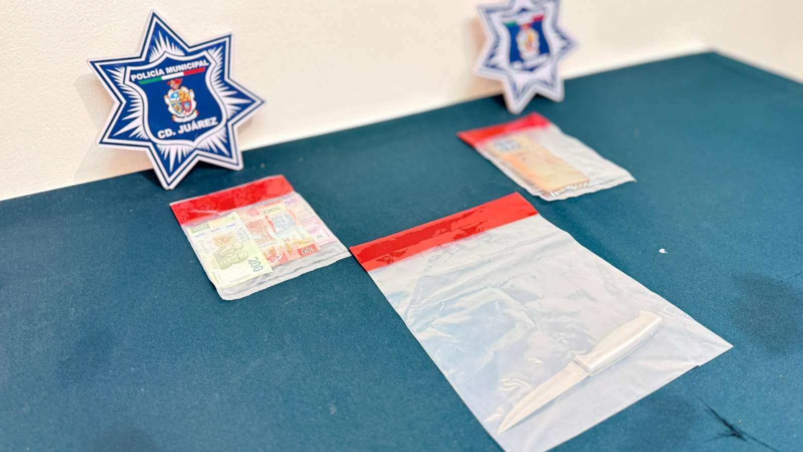 El individuo fue abordado conforme a los protocolos de seguridad y, durante una inspección preventiva, se le localizó dinero en efectivo, un teléfono celular perteneciente a la víctima y un arma blanca con la cual presuntamente cometió el robo, quedando en ese momento bajo detención.