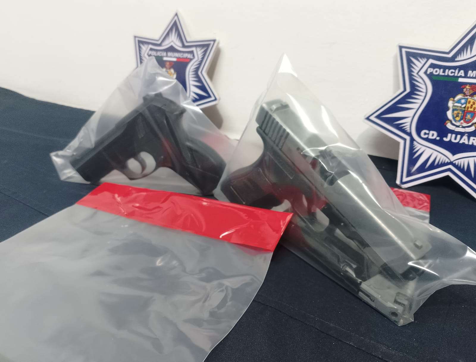 De igual manera durante las indagatorias en el lugar, y tras realizarles una inspección preventiva por protocolos de seguridad se aseguraron dos réplicas de armas de fuego, las cuales les fueron localizadas a quienes dijeron llamarse Adán M. H. de 18 años y Carlos Alexis R. E. de 19 años.