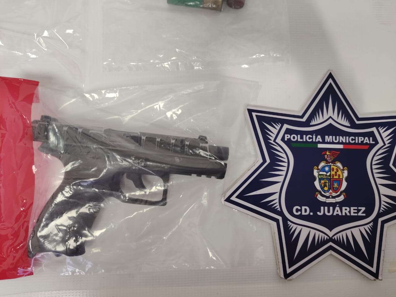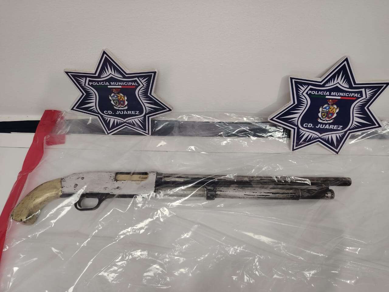 Posteriormente, los oficiales se percataron que en el mismo inmueble se encontraban dos sujetos más y una mujer, a quienes, tras una inspección preventiva, les localizaron un arma de fuego tipo revólver calibre 38, desabastecida, una escopeta calibre 12, diez cartuchos expansivos, cuatro cartuchos útiles calibre 9 milímetros y 15 envoltorios de cristal con un peso de 5.98 gramos.