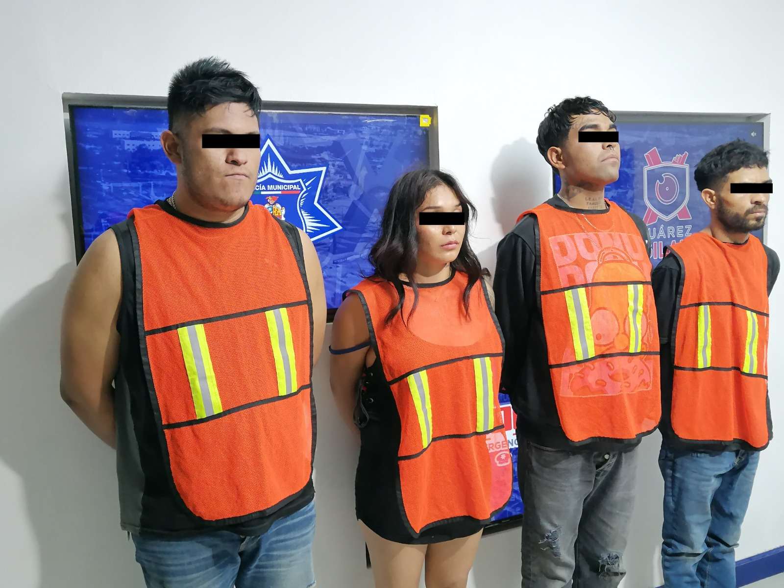 Cuudad Juárez .- Agentes de la Secretaría de Seguridad Pública Municipal detuvieron a David Ricardo R. C., Yulisa R. B., Johan Gabriel N. E. y Raúl B. H., por su presunta responsabilidad en la comisión de delitos contra la salud.