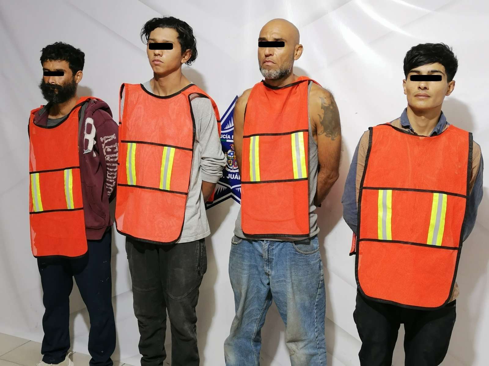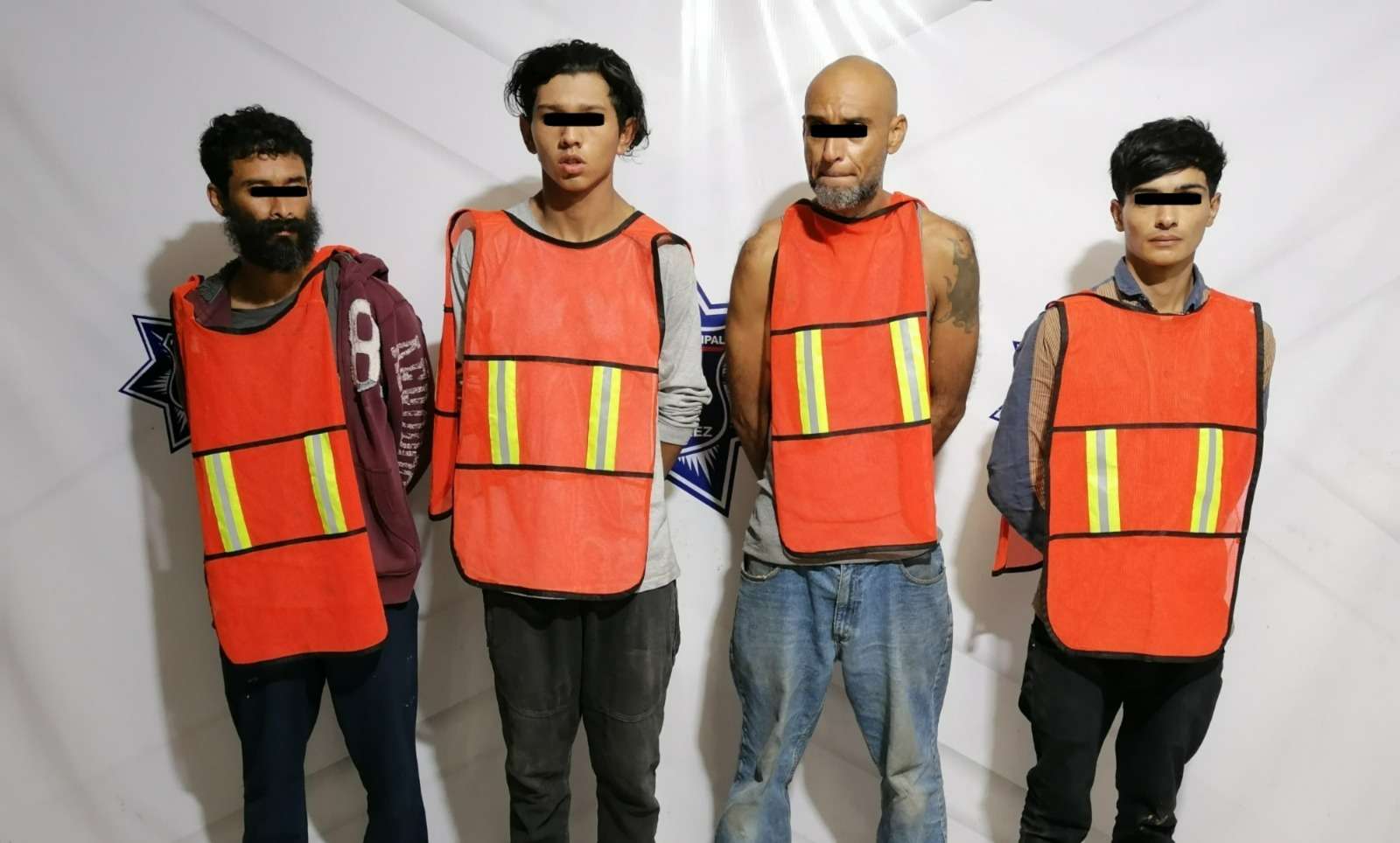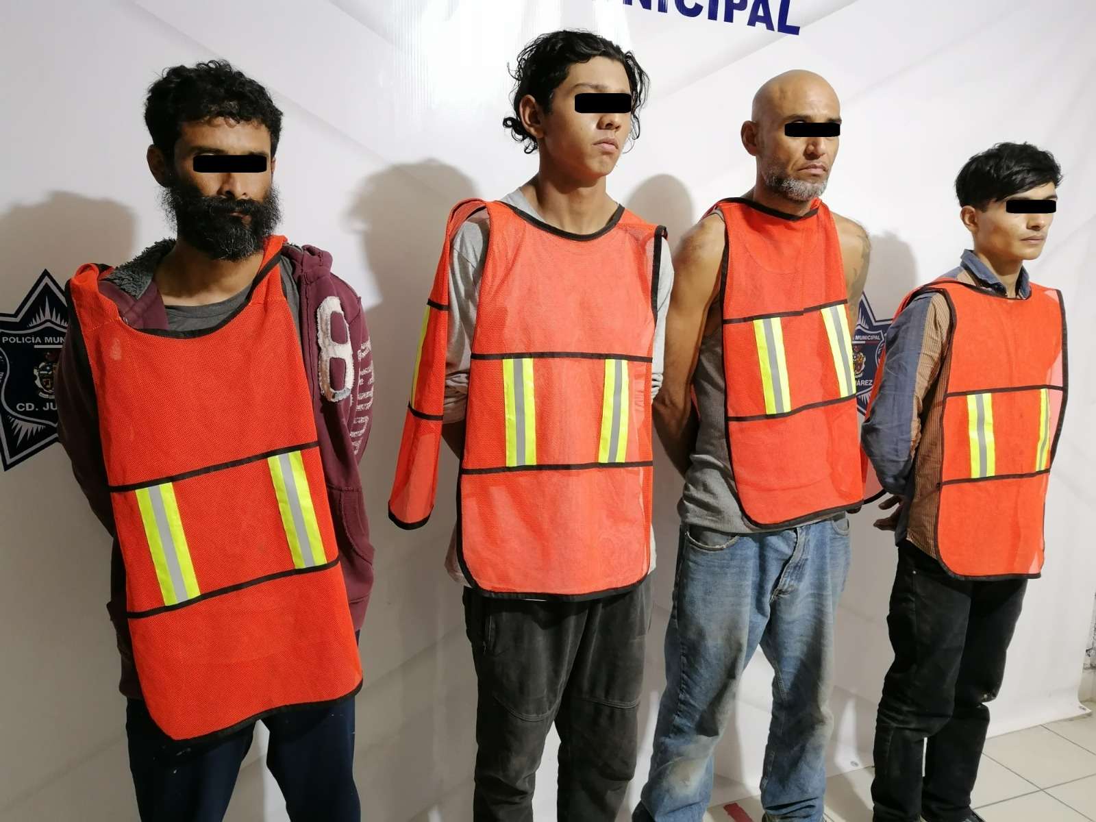 Ciudad Juárez.- Agentes de la Secretaría de Seguridad Pública Municipal capturaron a Manuel M. M., Juan Antonio C. E., Raúl A. y Jonathan S. E., por su presunta responsabilidad en la comisión del delito de robo, siendo uno de ellos detectado con un largo historial delictivo.