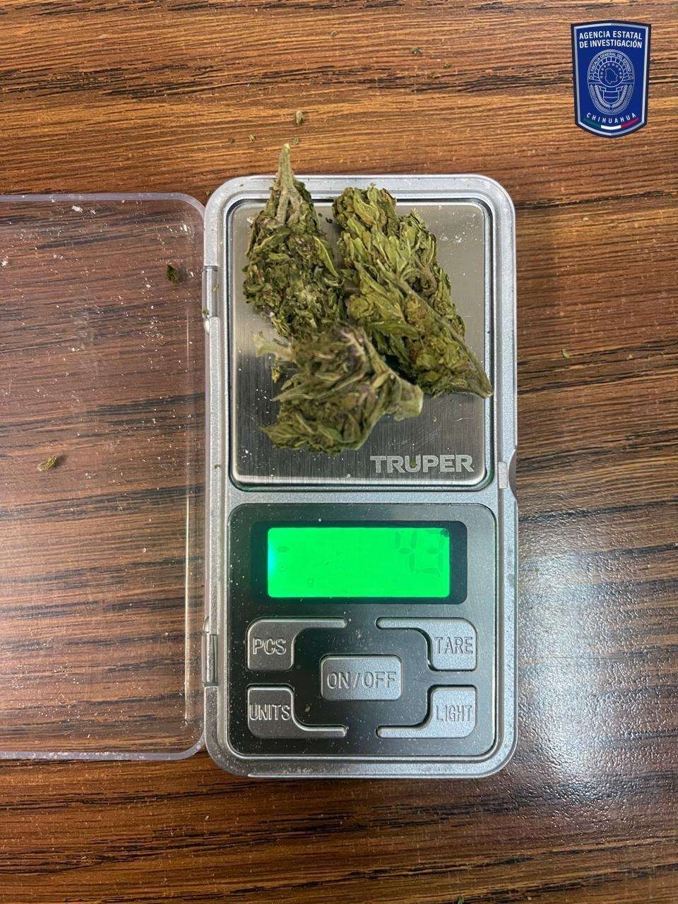 • Un envoltorio de plástico que contenía una hierba verde y olorosa con las características de la mariguana, con un peso de 4.3 gramos.