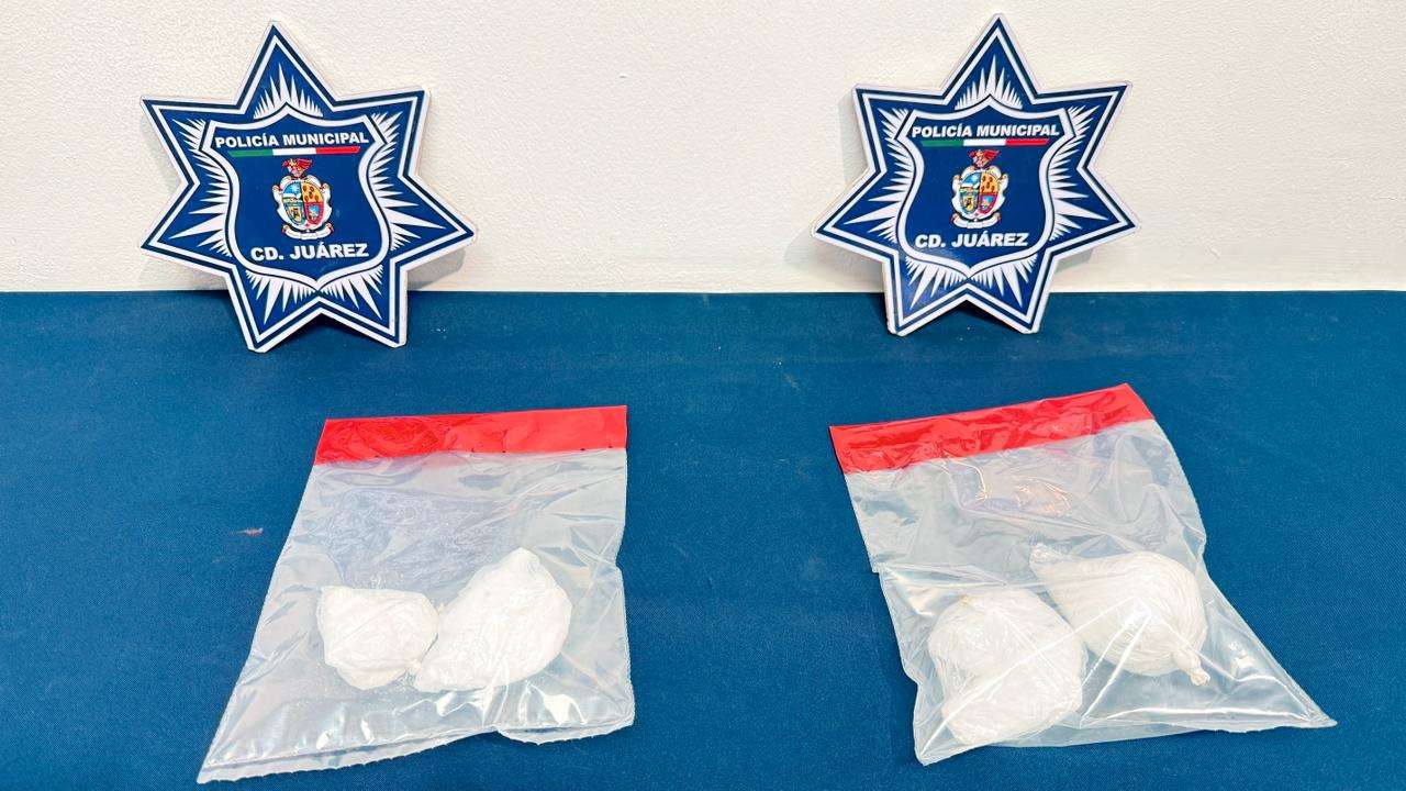 Al informarles que serían presentados ante un Juez Cívico, ambos individuos mostraron una actitud nerviosa, lo que motivó a los oficiales a realizar una inspección preventiva, en la cual se les localizaron entre sus pertenencias cuatro envoltorios de plástico con una sustancia granulada con características propias del cristal.