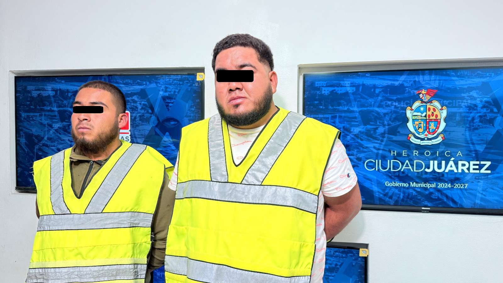 Ciudad Juárez. - Elementos de la Secretaría de Seguridad Pública Municipal, adscritos a la Estación de Policía del Distrito Poniente, realizaron la detención de dos hombres identificados como Francisco Manuel N. N. y Raymundo Alejandro N. N., por su presunta responsabilidad en la comisión del delito de desobediencia y resistencia de particulares.