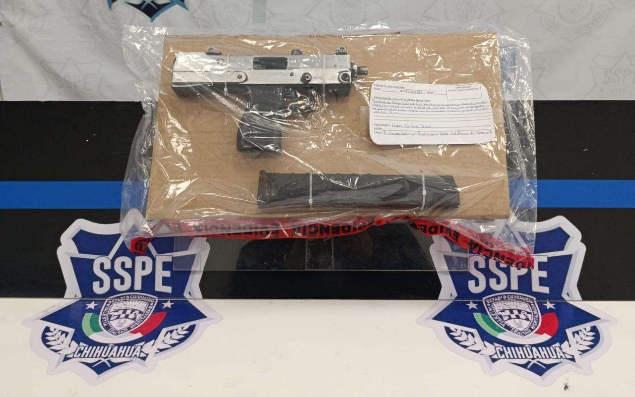 Ciudad Juárez.- Elementos de la Secretaría de Seguridad Pública del Estado (SSPE), a través de la Subsecretaría de Despliegue Policial, detuvieron a un masculino por violación a la Ley Federal de Armas de Fuego y Explosivos en Ciudad Juárez, tras asegurarle un arma tipo subfusil calibre 9 milímetros y un cargador abastecido, durante acciones de vigilancia en el Distrito Riveras.