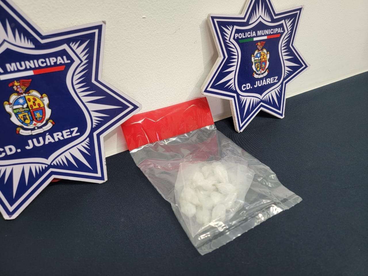 Motivo por el cual fue abordado para hacerle saber que sería presentado ante un Juez Cívico y al realizarle una inspección preventiva por protocolos de seguridad le encontraron entre sus pertenencias 19 dosis de cristal, procediendo con su detención.