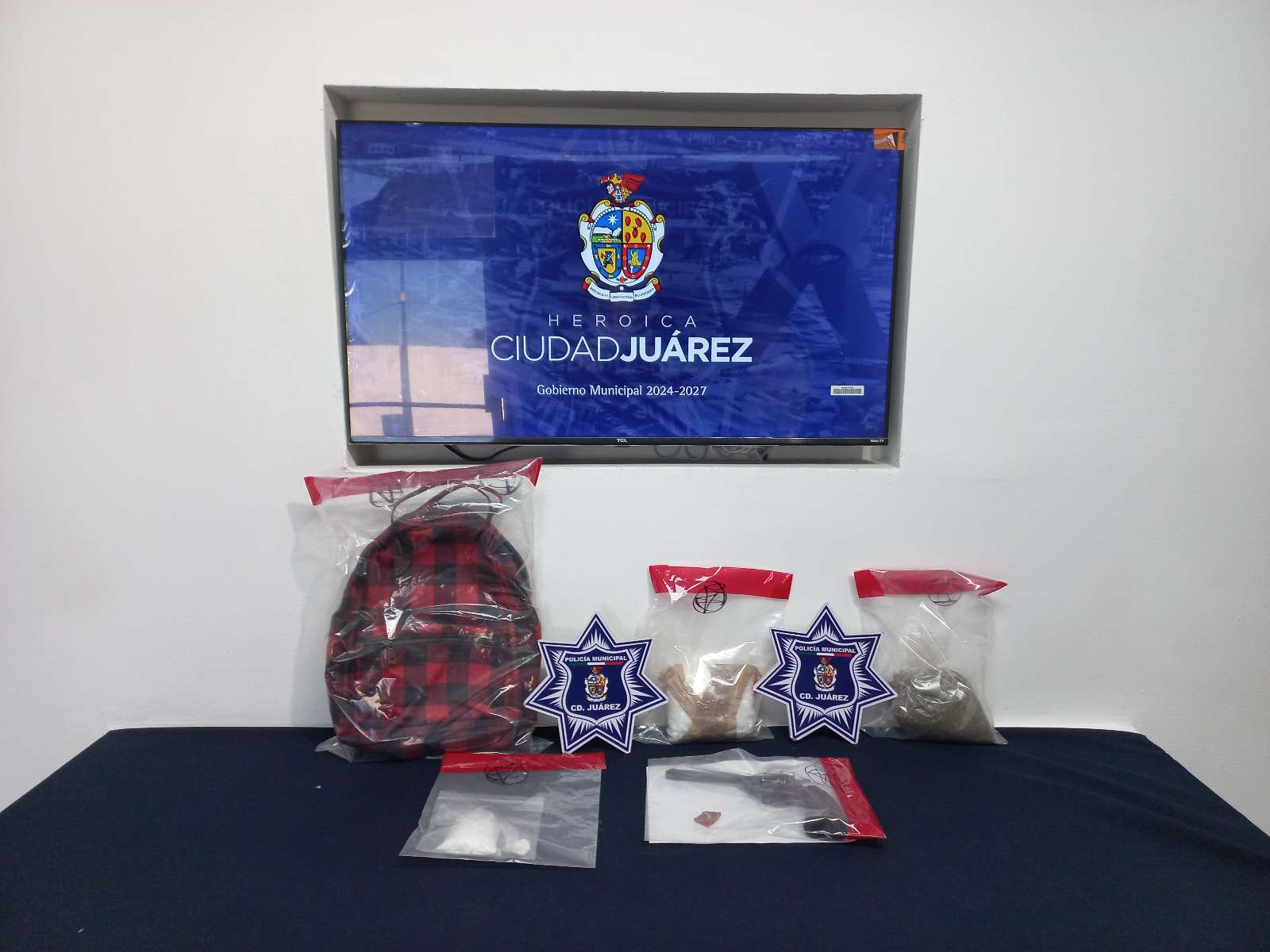 Ciudad Juárez.- Elementos de la Secretaría de Seguridad Pública Municipal, adscritos a la Estación de Policía del Distrito Sur, realizaron la detención de un hombre identificado como Miguel Ángel R. C., por su presunta responsabilidad en la comisión de delitos contra la salud y violación a la ley federal de armas de fuego y explosivos.