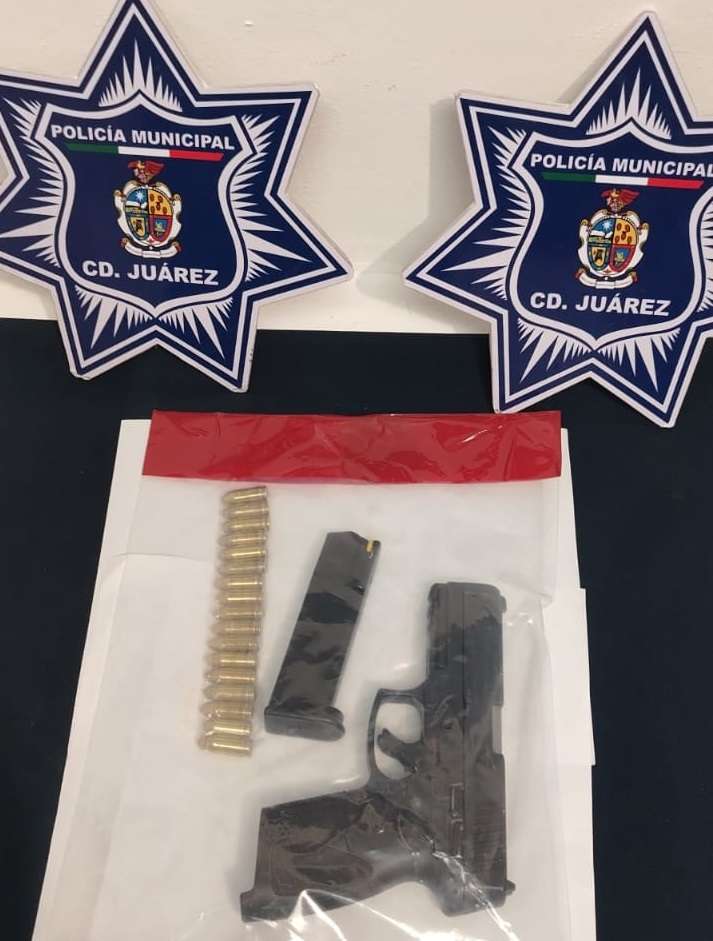 Ciudad Juárez.- Agentes de la Secretaría de Seguridad Pública Municipal, adscritos a la Estación de Policía del Distrito Sur, detuvieron a Jesús Manuel R. V. y a un adolescente, por su presunta responsabilidad en la comisión de delitos contra la ley federal de armas de fuego y explosivos; mismos que serán investigados por un hecho de homicidio ocurrido en la colonia Infonavit Tecnológico.