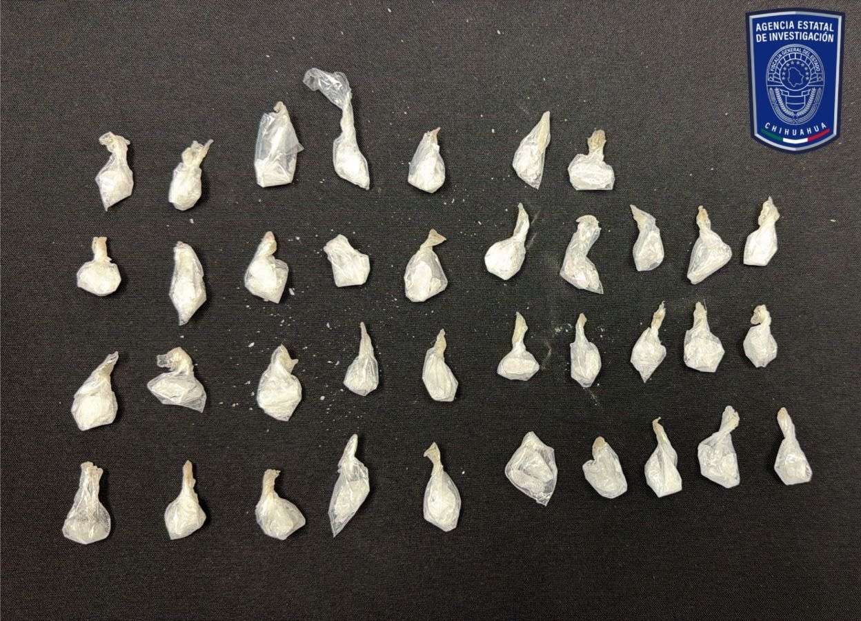 La intervención policial sucedió ayer miércoles en la calle Helicóptero de la colonia Jardines del Aeropuerto, de Ciudad Juárez, en donde tras una inspección, los oficiales detectaron que la mujer se encontraba en posesión de 37 envoltorios que contenían metanfetamina conocida como cristal, con un peso total de 38 gramos.