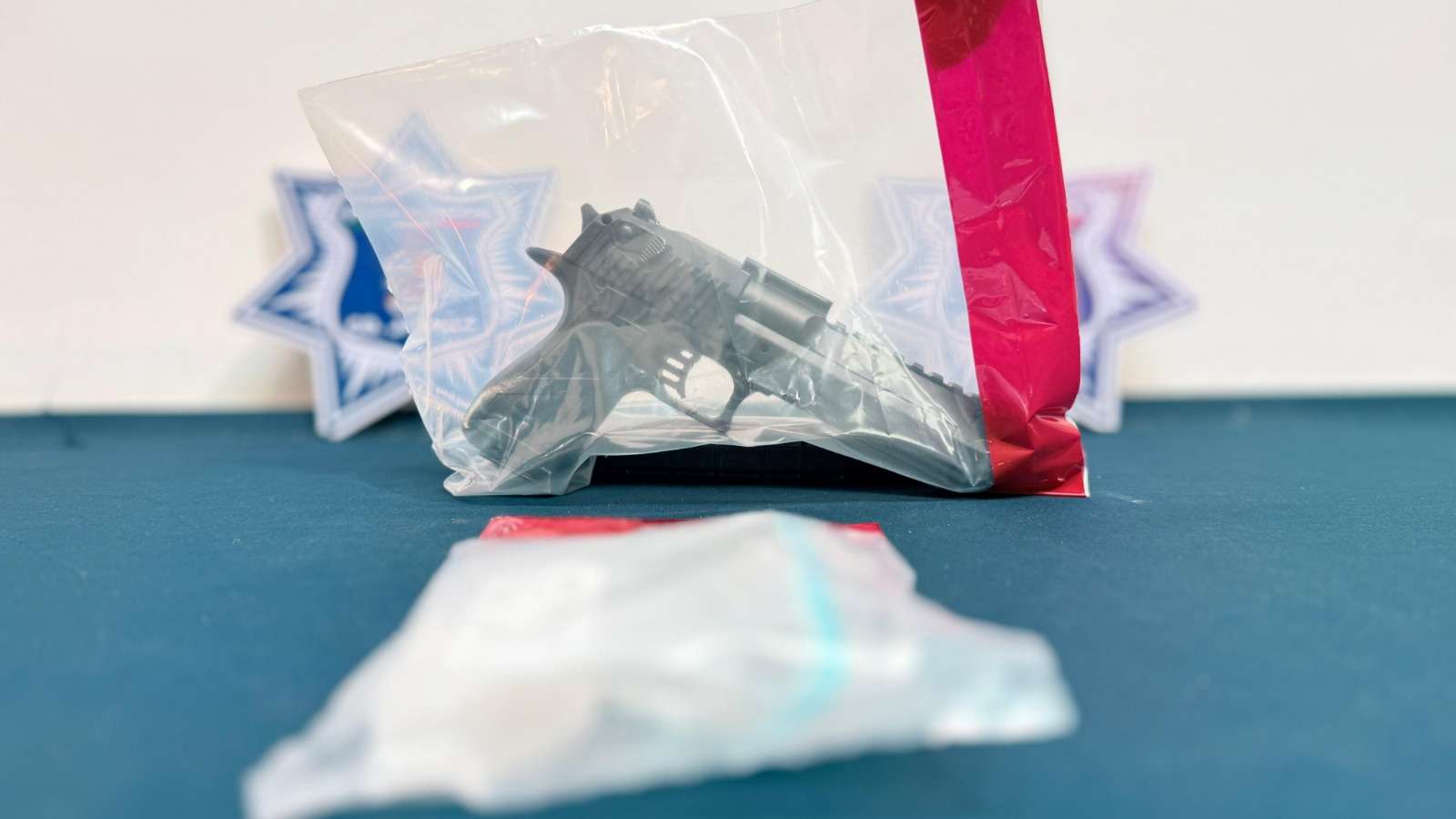 Al abordarlo conforme a los protocolos de seguridad y notificarle que sería presentado ante el Juez Cívico, los oficiales realizaron una inspección preventiva, localizándole entre sus pertenencias un envoltorio de plástico que contenía aproximadamente 24 gramos de cristal, así como una pistola de juguete en color negro, procediendo con su detención.