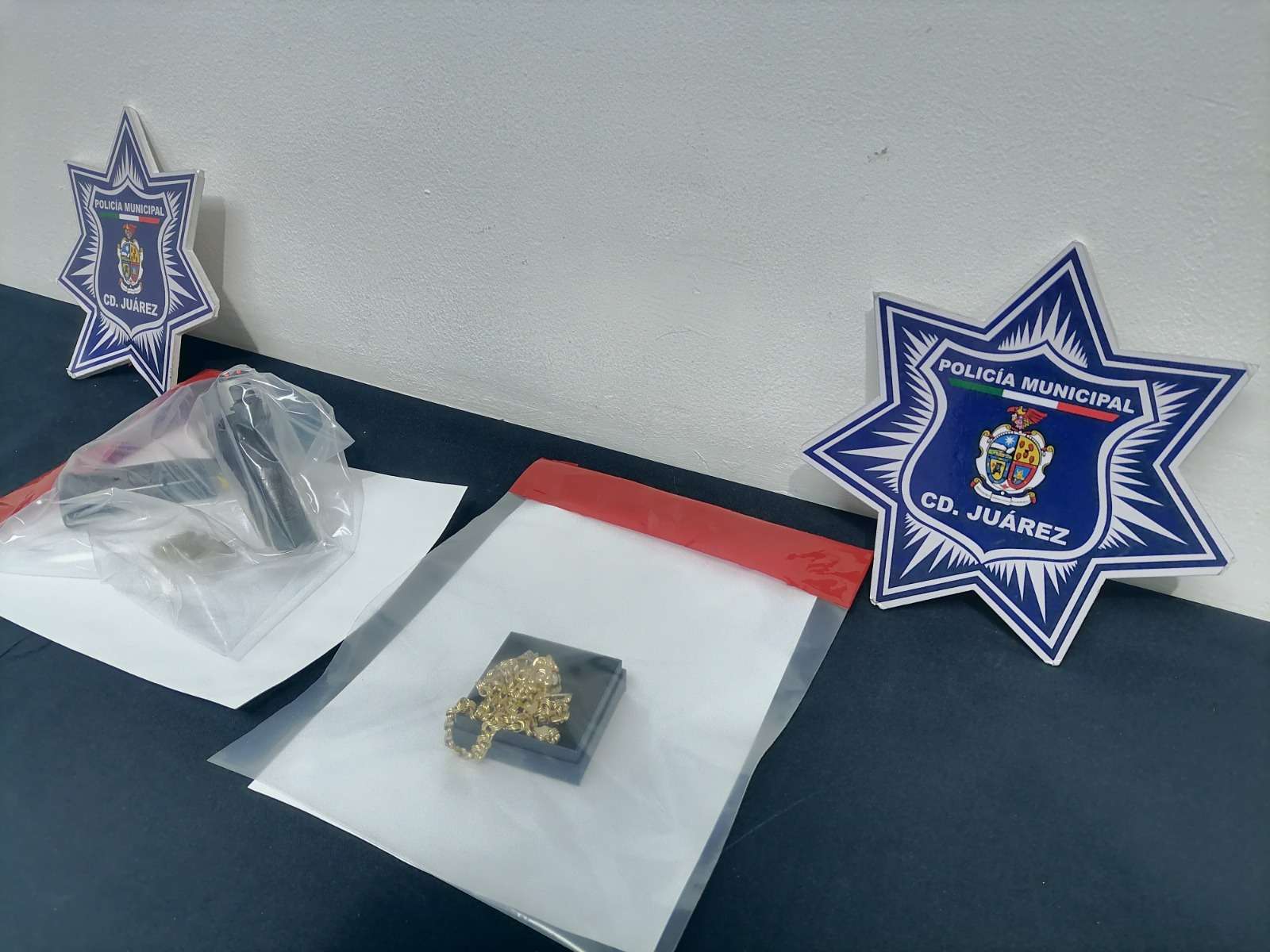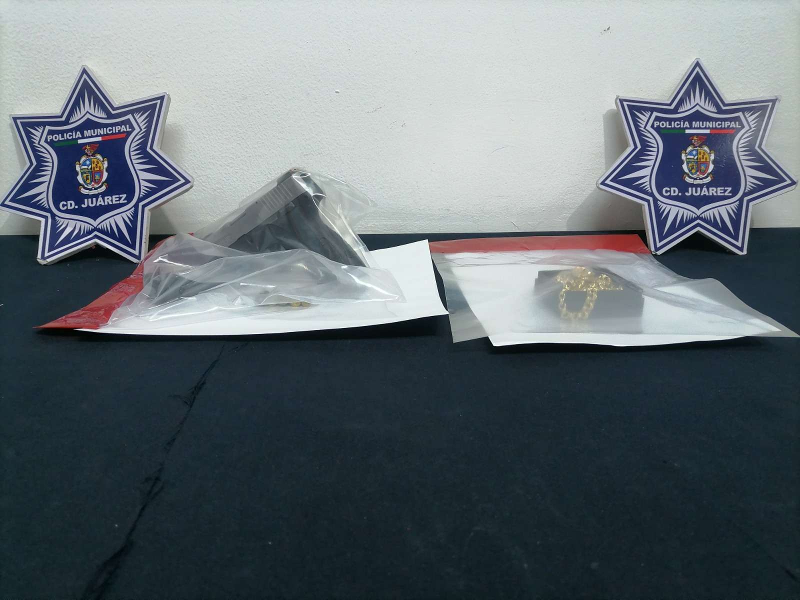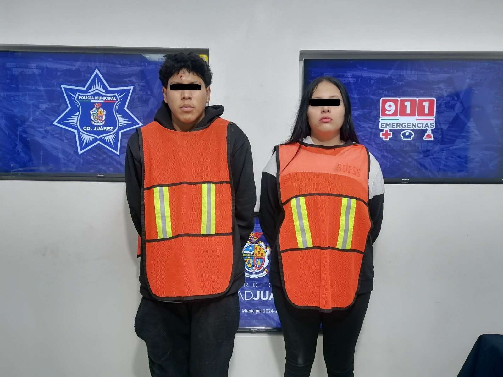 Ciudad Juárez -. Elementos de la Secretaría de Seguridad Pública Municipal, adscritos a la división del Grupo de Operaciones Especiales (GOE), arrestaron a Ángel Ramiro R. P. y Sheyla V. P., por su presunta responsabilidad en la comisión de los delitos de robo agravado, contra la ley federal de armas de fuego y explosivos y/o lo que resulte.