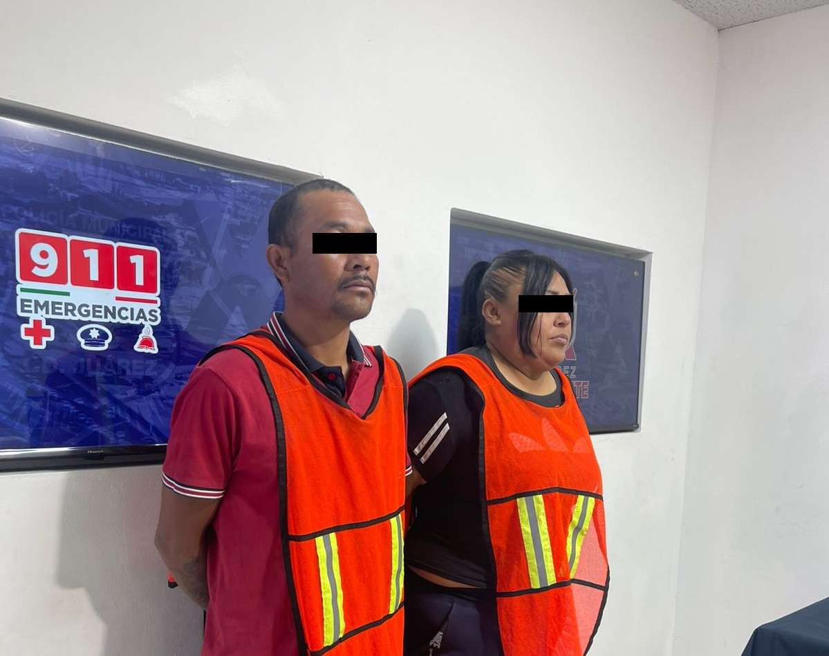 Ciudad Juárez.- Agentes de la Secretaría de Seguridad Pública Municipal arrestaron a Víctor Alfonso M. O. y Elizabeth Z. G. por su presunta responsabilidad en la comisión del delito de robo, resultando el masculino con una orden de aprehensión vigente en su contra.